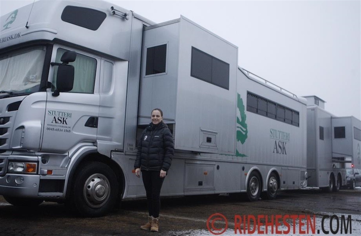 Springrytter Karen Møller Rohde, der arbejder for Stutteri Ask sammen med sin mand Søren Møller Rohde, har ladet Ridehesten komme på besøg i den store lastbil, som er deres hjem, når de er ude til stævner.