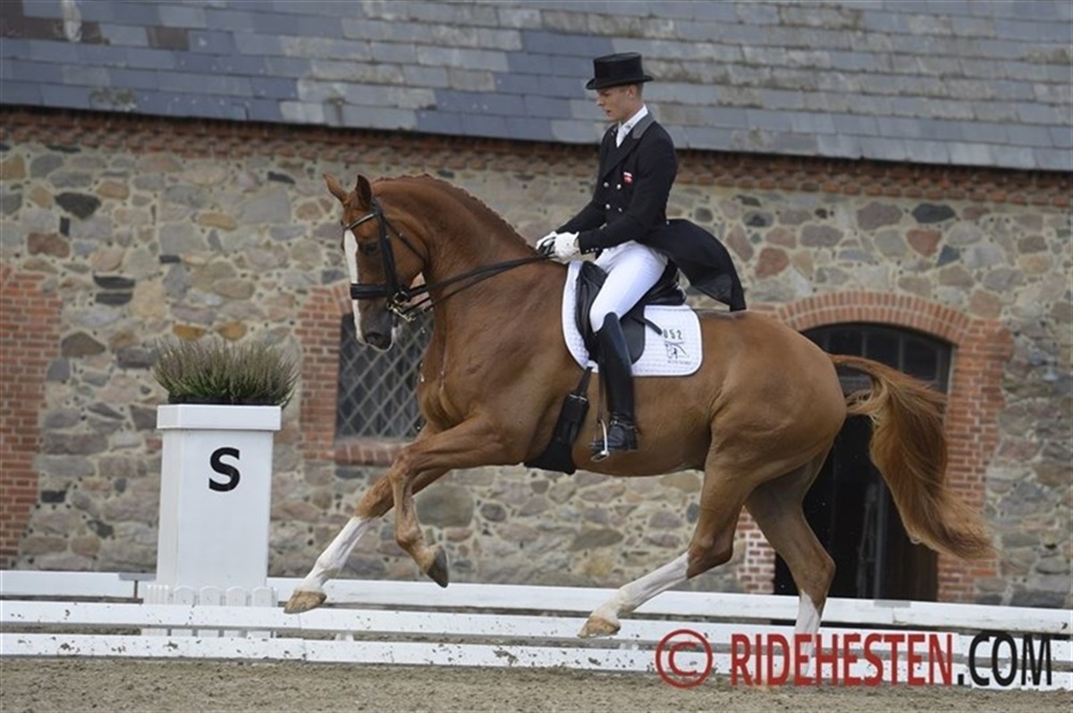 Så kom der for alvor gang i den på Vilhelmsborgs baner. Springbanen har siden i går været i gang med landsstævne, mens dressurbanen på gårdspladsen først blev indtaget i dag. Her var det de 6-, og 7-års dressurheste der skulle ride den første af to afdelinger. De to klasser blev bedømt sammen, og vinderen af dagens Youngster cup klasse blev Blue Hors Don Olymbrio (e. Jazz / Olympic Ferro) med Allen Grøn i sadlen. De red til 72,500%, meget tæt forfulgt af Zepter (e. Blue Hors Zack / Wolkentanz II) og Daniel Bachmann Andersen der red med 72,361%. Nanna Skodsborg Merrald blev nr. 3 med Gørklintgårds Quantico (Quaterback / Carpaccio). De red til 71,282%.