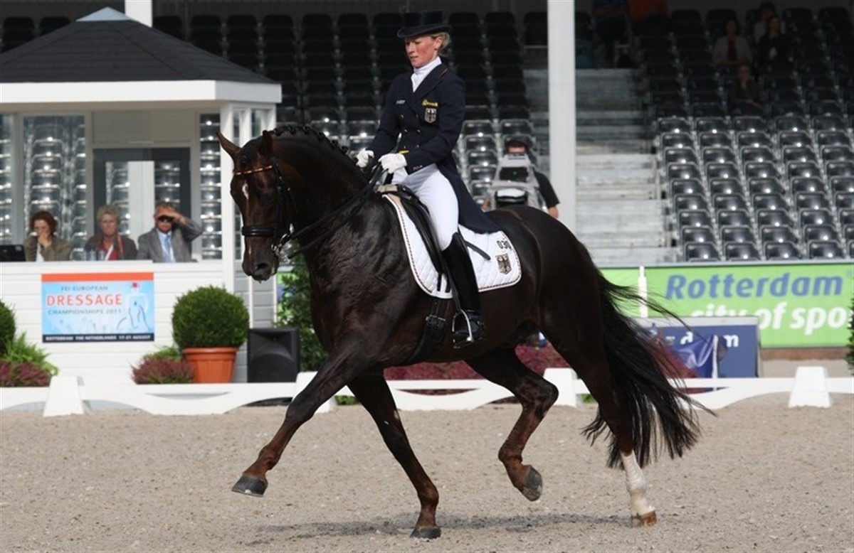 Sidste weekends tyske mesterskab i dressur markerede for alvor et generationsskifte i tysk dressursport. Helen Langehanenberg blev ny mester på avlshingsten Damon Hill e. Donnerhall / Rubinstein I, efter at have taget 2. pladsen i Grand Prix, og sejret i både Grand Prix Special og Grand Prix Kür. Sølvet gik til Matthias Alexander Rath og den 12-årige avlshingst Totilas e. Gribaldi / Glendale, der sejrede i Grand Prix på mesterskabets første dag, og derefter måtte se sig henvist til 2. pladsen på de øvrige konkurrencedage. Kristina Sprehe og 11-årige Desperado e. De Niro / Wolkenstein II tog bronzen. I videoen her kan du se Langehanenbergs Kür-ridt, der blev honoreret med 88,40%.