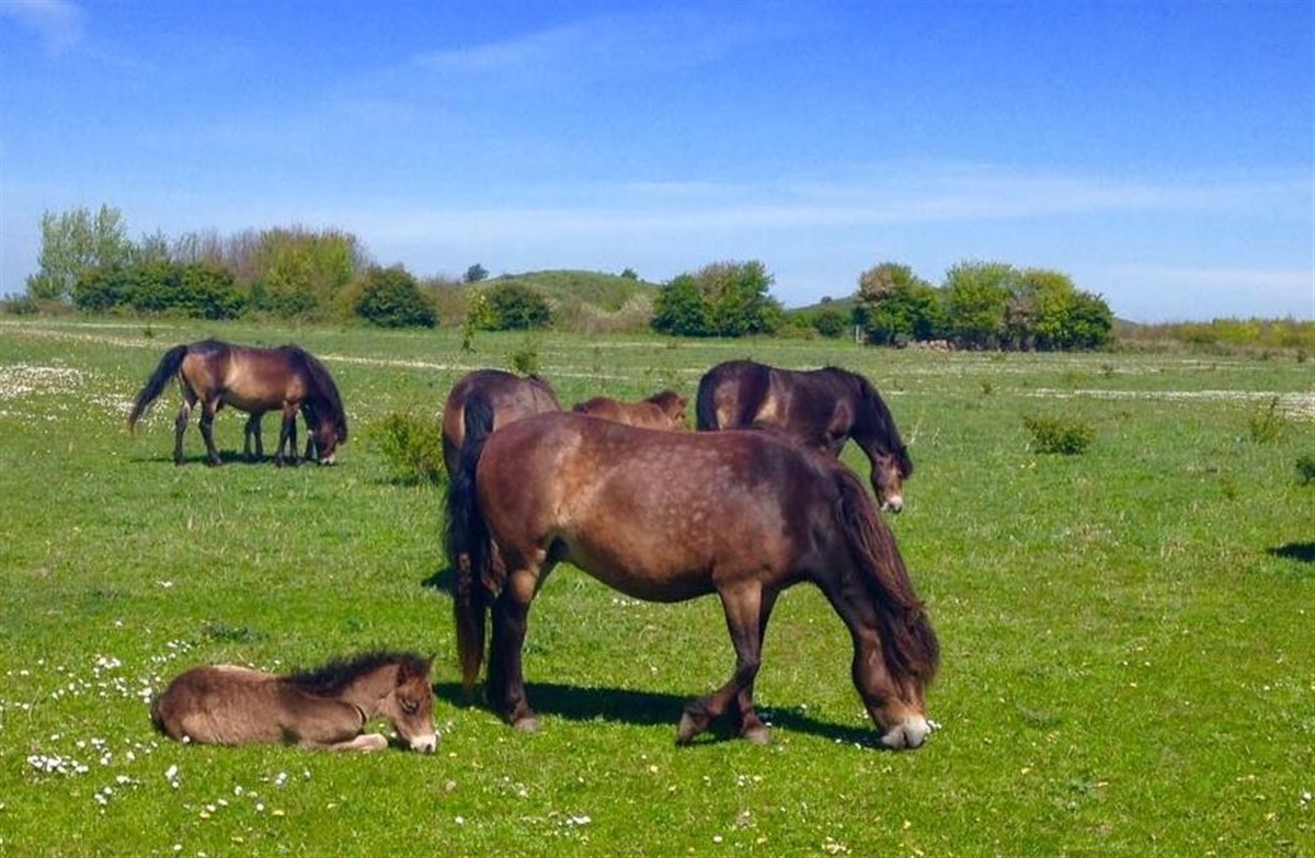 Hvis du for et kort øjeblik glemmer hegnet bag dig, og blot betragter de 55 exmoor ponyer, som græsser fredeligt, føles det næsten som en dansk version af hestefilmen ”Spirit”. På det sydlige Langeland lever hesteflokken vildt i en 110 hektar stor indhegning. De går ude hele året, sørger selv for føde og passer i det store hele sig selv.