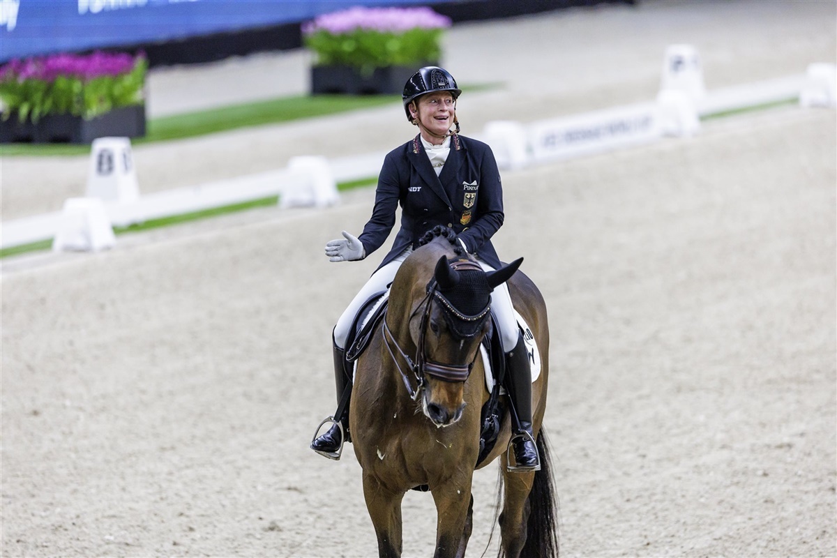 55-årige Isabell Werth er én af de allermest vindende rytter nogensinde, og dette var hendes 25. World Cup-finale. Sine 35 år i topsporten og enorme erfaring fik hun virkelig demonstreret i dag. Som andensidste ekvipage i klassen kom hun og DSP Quantaz e. Quaterback/ Hohenstein på banen. Hingsten var tydeligt presset over omgivelserne og trykkede sig ret meget flere steder både udenfor og inde på banen.