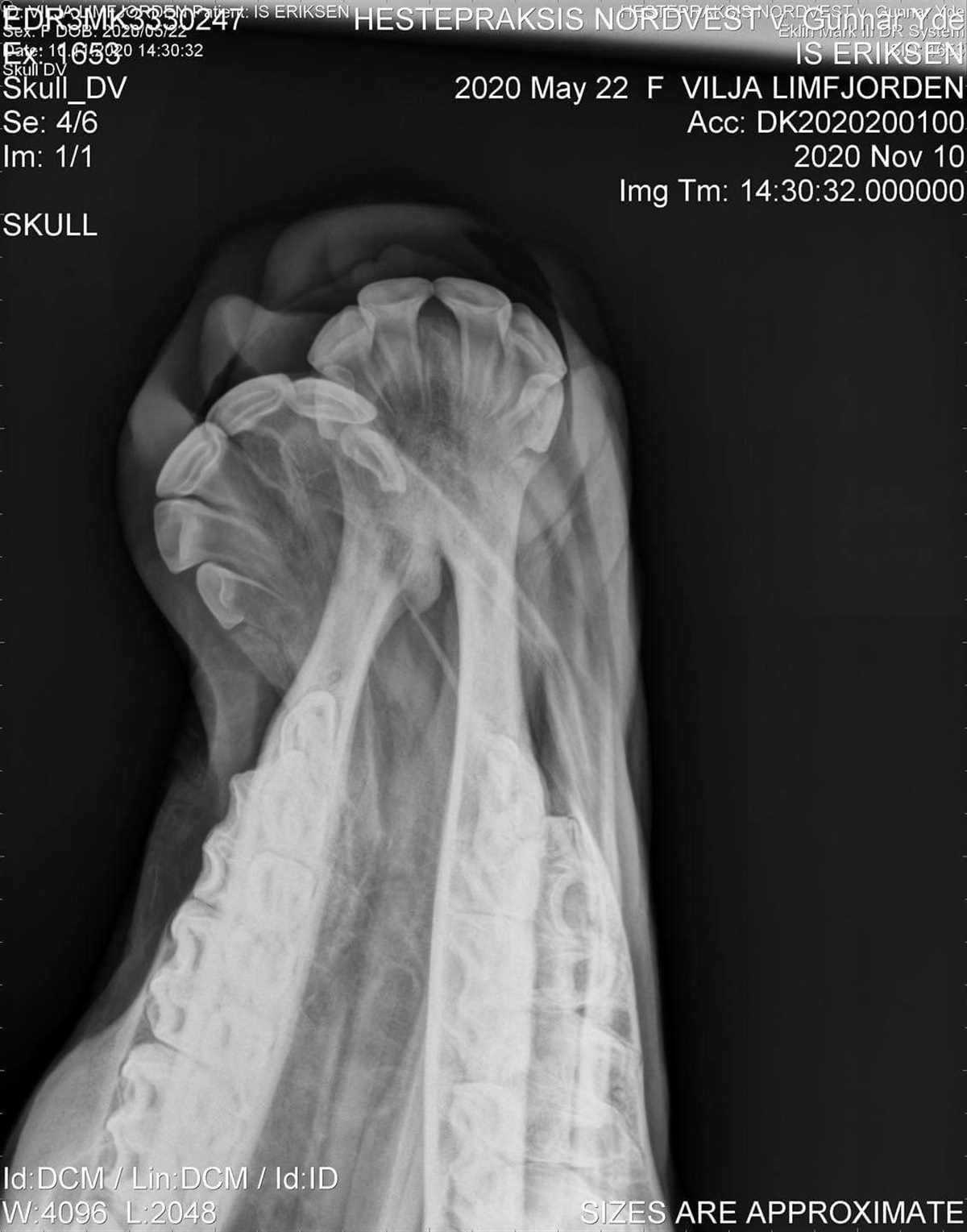 – Hun både spiser og drikker fint, og virker ved godt mod. I mandags tog de kontrolrøngten af hende, og hun er ikke særlig hævet efter operationen. Hun virker heller ikke irriteret af skinnerne som sidder på siden af kæberne. Dyrlægen er godt tilfreds med operationen og måden hun takler det hele på, slutter Christina, som desuden fortæller, at Vilja skal blive hos hende.