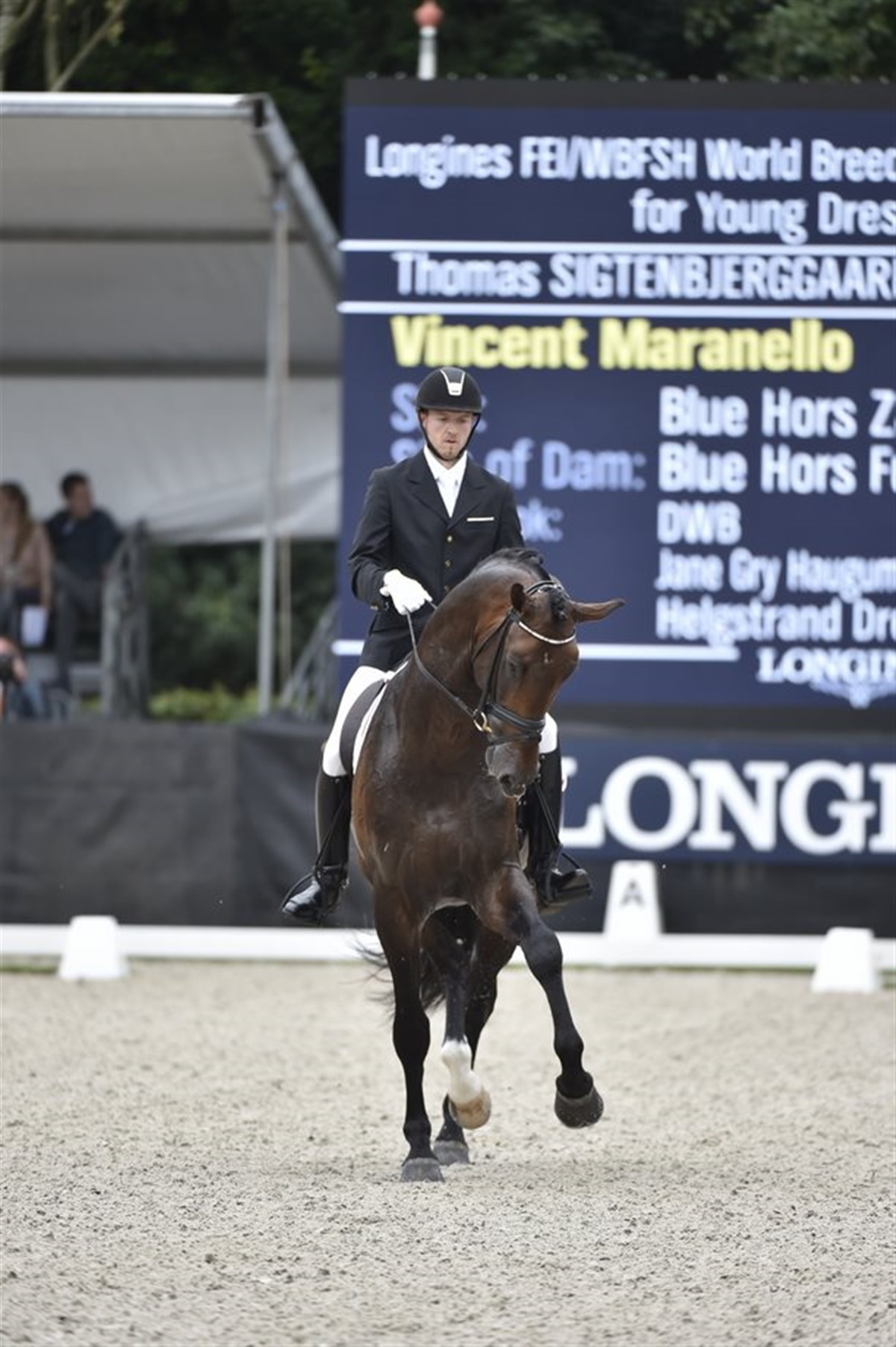 I 2015 blev hesten solgt til Helgstrand Dressage og repræsenterede Danmark ved verdensmesterskabet for ungheste i Verden, hvor den blev nr. 9 i finalen. Året efter i en alder af 6 år blev Vincent Maranello nr. 7 i trøstefinalen til verdensmesterskabet for unghest i Ermelo.