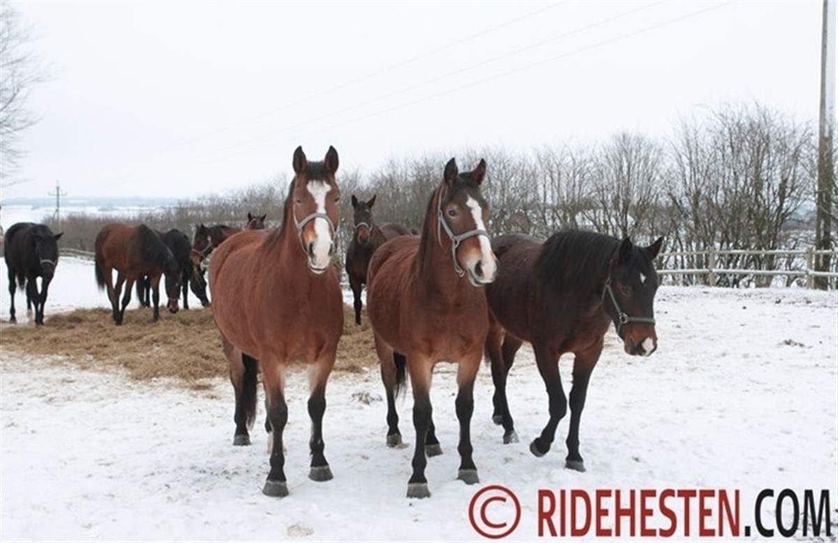 Fodring Først og fremmest kan hesten have behov for ekstra foder, bl.a. hø, for at kunne holde varmen udendørs. Særligt fordøjelsen af fibre hjælper til at holde hesten varm, så sørg for, at den har rigeligt hø. Vand og salt Øget indtag af hø og andet grovfoder kan øge risikoen for forstoppelse, hvis ikke hesten indtager tilstrækkeligt med vand. Hold derfor øje med hestens vand – det skal være rent, friskt og frostfrit. Sørg også for, at hesten har fri adgang til salt – fx en sliksten – eller tilfør salt til foderet, da salt får hesten til at drikke mere. Pleje Det generelle management af hesten tager ofte længere tid om vinteren. Fx er det en god idé at varme biddet inden hesten får det i munden. Har hesten svedt under træning skal den tørre helt inden den igen sættes ud på folden eller ind i boksen. Måske skal hesten klippes, hvis den skal trænes hen over vinteren, og den får da brug for at have dækken på, for at kunne holde varmen – det samme vil være tilfældet hos heste, der ikke selv sætter tilstrækkeligt med vinterpels. Mudder Det er stort set umuligt at undgå mudder på folden, men det er vigtigt, at der er steder på folden, hvor hesten kan slippe væk fra mudderet. Fjern gerne mudder fra hestens ben med jævne mellemrum, for at undgå infektioner og svamp. Is Isklumper under hestens hove øger belastningen på bl.a. sener og ledbånd, så fjerne gerne isklumperne flere gange dagligt fra hestens hove. Hold godt øje med områder, der kan blive glatte og strø med sand eller lignende (spær evt. helt af), for at undgå skader. Læ Træer og lignende kan yde hesten læ mod vinden, mens et skur eller lignende mulighed for at gå indenfor yder hesten læ mod både vind, regn og lignende. Dækner Giv kun dækken på hasten, når den er en og tør. Husk vandtæt og åndbart dækken på folden. Tjek heste med dækner flere gange dagligt for gnavesår, at dæknet er intakt mv. Reparer huller og lignende hurtigst muligt. Tag ofte dækkenet af hesten og strigl den. Kilde: The Horse
