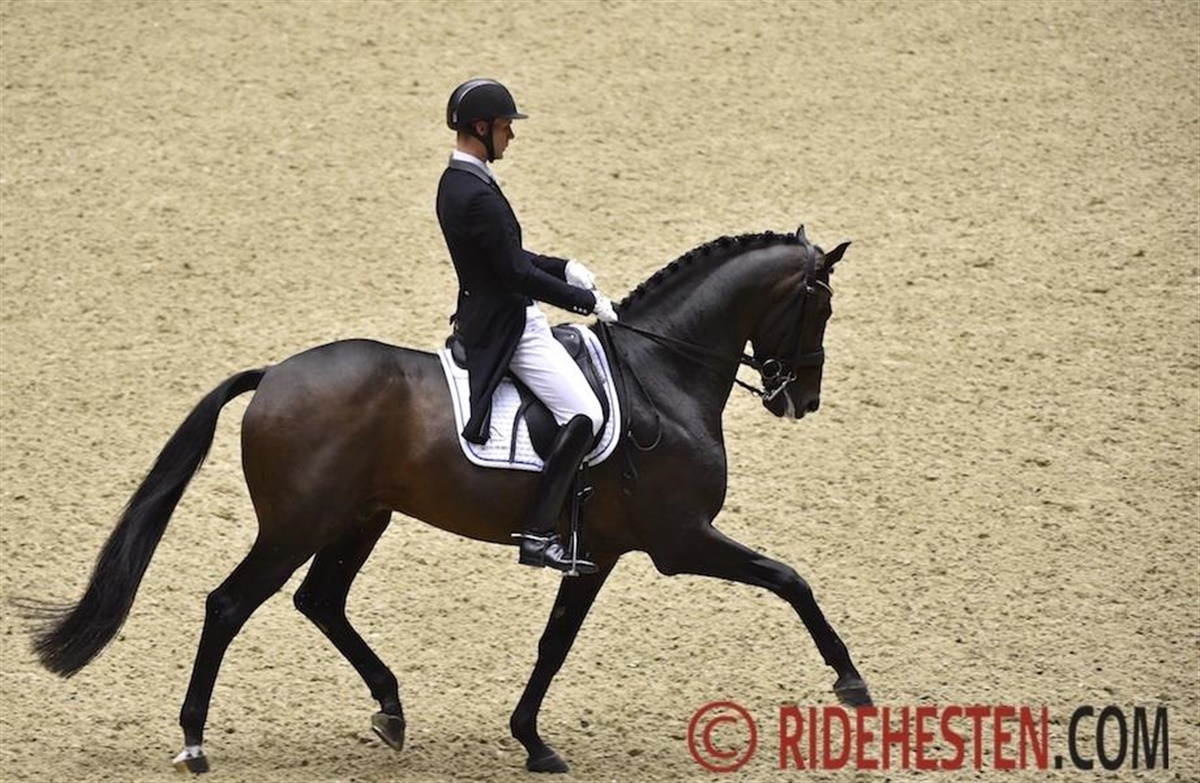 Den første dressurhest, publikum får at se på stadion i Tryon, er en Dansk Varmblod. Et kvarter inden dagens Grand Prix-klasse officielt starter, rider amerikanske Olivia Lagoy-Weltz nemlig på banen på den 14-årige DV-hingst Lonoir e. De Noir 3/Loran (opdr. Jan og Dorte Rassing). Deres rolle er at varme dommerne op med et testridt inden konkurrencen for alvor går i gang.
