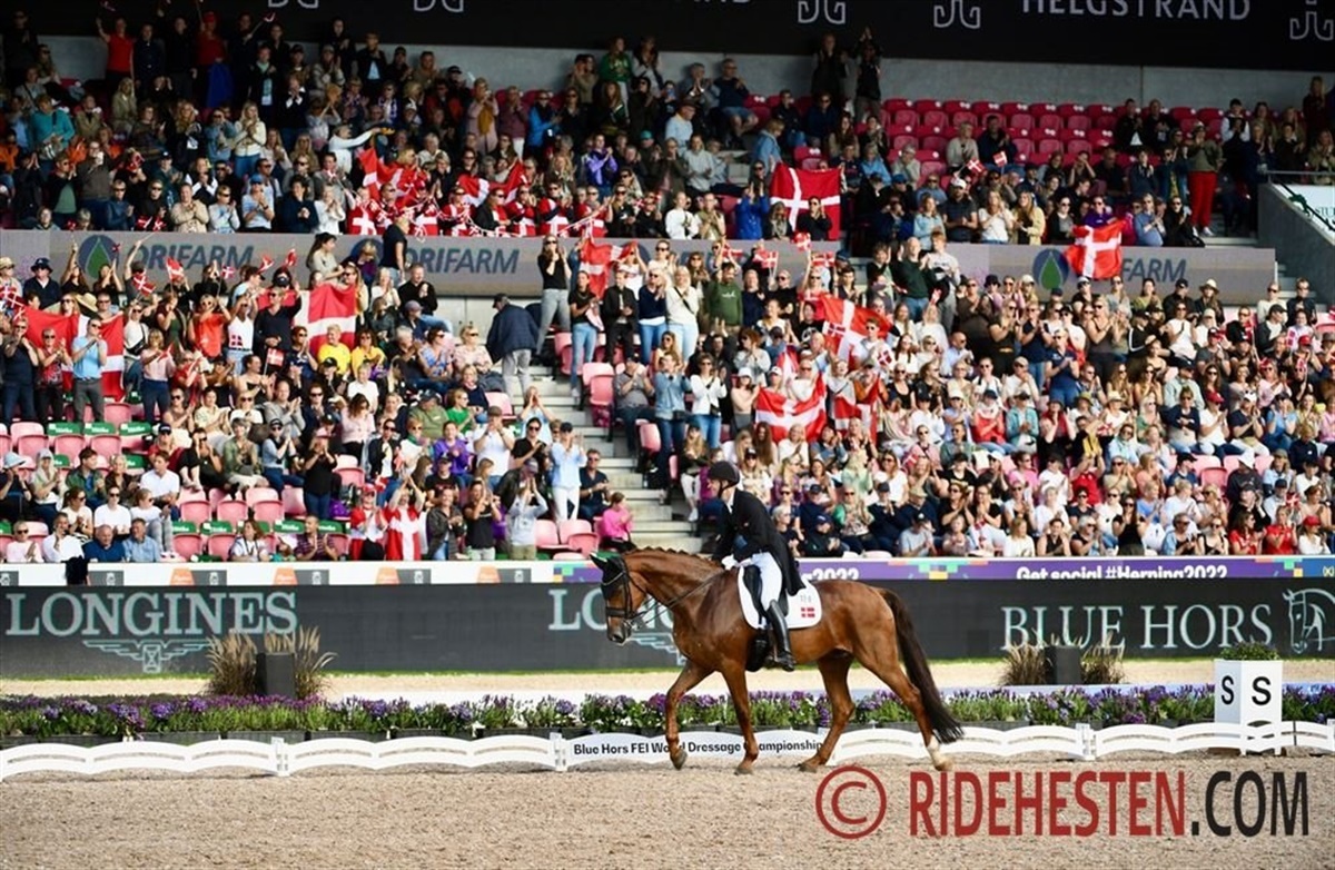 – Jeg kan kun være stolt af endnu en personlig rekord her til VM i Herning. Det er helt klart det største stadion, jeg har redet på nogensinde. Han er meget talentfuld, men hans utrolige motor er også lidt af en udfordring at kontrollere, så fronten også kan følge med. Jeg prøvede på ikke at overgøre det, og nu er det spændende at se, hvilke tre danskere, der kommer til at ride küren i morgen.