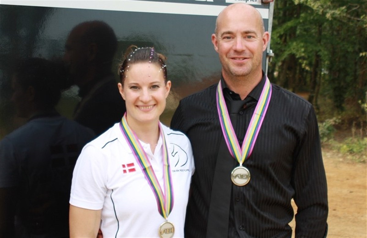Nerverne sad udenpå dragten de sidste minutter, inden Rikke Laumann skulle på banen til finalerunden ved VM i voltigering. De nærmeste konkurrenter havde leveret gode præstationer. Joanne Eccles havde lagt sig klart i spidsen, så guldmedaljen var fordelt, men kampen om sølv og bronze var stadig helt åben. Sarah Kay fra Tyskland, der lige akkurat skubbede Rikke ned på en bronzeplads ved EM sidste år, leverede et suverænt program, som flyttede hende tre pladser frem til en 2. plads, lige inden Rikke skulle ind. Dette medførte et kæmpe bifald i hallen fra alle de tyske tilskuere, så både Rikke, Lasse Kristensen (Rikkes longefører) og Ghost Alfarvad Z virkelig skulle holde fokus. Ghost var helt upåvirket af alt larmen fra de hujende tilskuere, og da Rikke, Lasse og Ghost løb på banen, blev der helt stille, mens alle holdt vejret. Nu skulle medaljerne fordeles, og både tyskerne og schweizerne håbede på metal. Rikke Laumann leverede et stærkt og sikkert program, men intet var afgjort, før dommerne havde givet deres point for dagens program, og det samlede resultat af de fire runder lå klart. Rikkes navn og det danske flag kom heldigvis op på storskærmen lige under Joanne Eccles med Sarah Kay på 3. pladsen. Longefører Lasse Kristensen udtaler: - Jeg er meget tilfreds. Vi nåede vores målsætninger både med hesten og med Rikkes voltigering. Målet med Ghost i år var at opnå en stabil og velfungerende hest med god kvalitet i galoppen, og han toppede virkelig i finalen med en suveræn præstation. Ghost har i alle runderne ligget mellem de højest placerede heste, hvilket er meget vigtigt i voltigering, hvor hesten tæller 25% af den samlede score. Målet med Rikkes præstation var at få vendt den nervøse energi, der altid opstår ved mesterskaber, til positiv energi, og det har hun virkelig vist i år her i Le Mans, slutter han. Den nyslåede sølvvinder, Rikke Laumann, fortæller: - Jeg er super glad! Jeg føler virkelig, at jeg har leveret maximale præstationer i alle fire runder. Vores forberedelser har virket, og det er en vanvittigt fed følelse. Målet var sølv, men jeg havde ikke turdet håbe på det selv med maximale præstationer, da de andre piger er så gode i år. Det er den fedest mulige afslutning på en sæson, hvor jeg har følt mere glæde og gejst i min træning end nogensinde. Vores team har virkelig fungeret i år, og jeg kan mærke, at vi nu har været sammen i et år mere. Lasse kan virkelig støtte mig nu, og Ghost har været helt fantastisk. Det mentale arbejde er meget vigtigt for min præstation, og det har vi arbejdet meget med i træningen derhjemme bl.a. med hjælp fra en sportspsykolog. Det er fantastisk, når det hele lykkes! Tak til alle i teamet, der har hjulpet mig både derhjemme og hernede, slutter hun glad. Pressemeddelelse fra Lise C. Berg, Chef d'Equipe