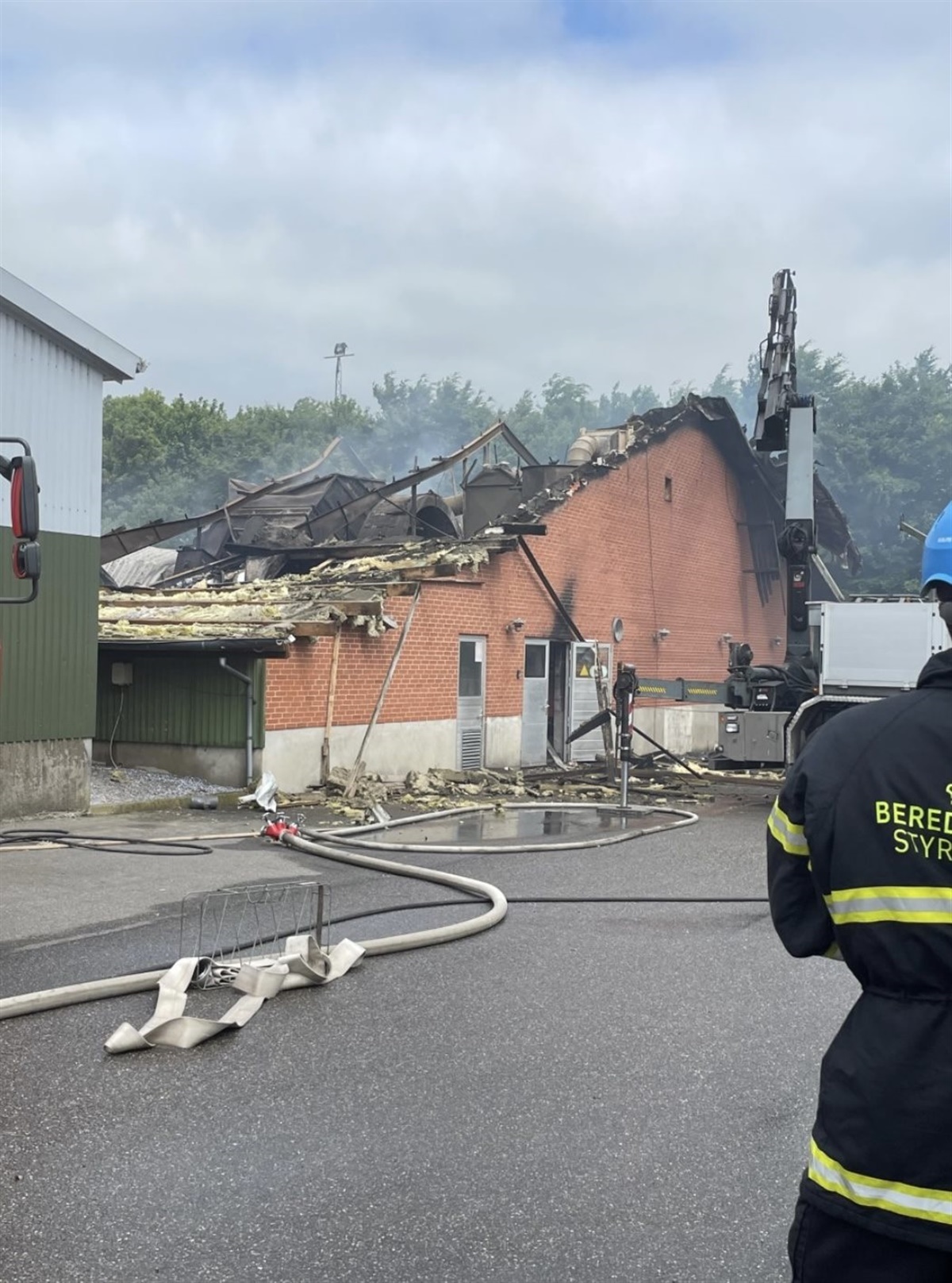 – Det drejer sig om en stor hal med både halm og gasflasker. Den er så skadet, at den ikke kan reddes.