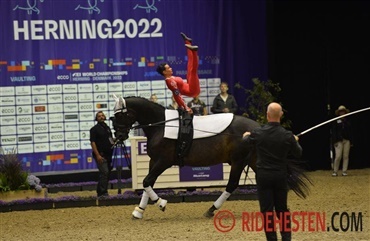 – I modsætningen til dressur, hvor hesten skal arbejde væk fra hjælperne, skal en voltigeringhest arbejde op imod hjælperne. Flytter hesten sig 3 centimeter til den ene side, så falder udøveren ned, forklarer Lasse Kristensen, der er longefører.