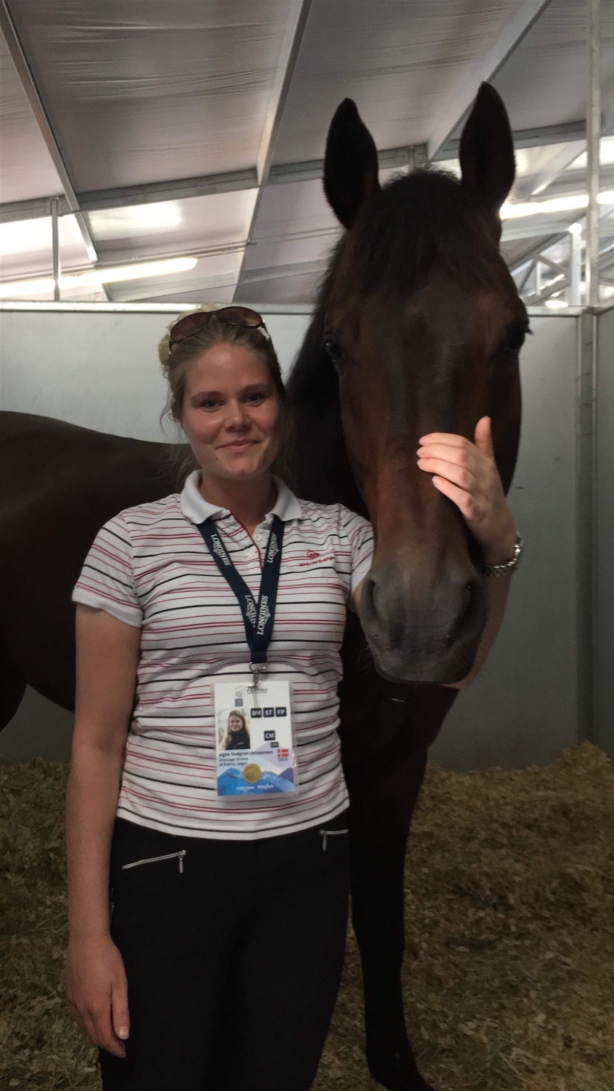 Signe der oprindeligt er fra Videbæk nær Herning, har arbejdet hos Helgstrand Dressage siden oktober sidste år og blev i maj i år fast groom for Betina Jæger.