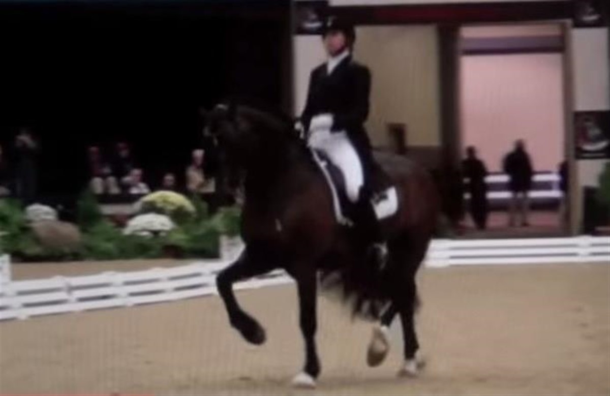 Den ca. 145 cm høje welsh cob-hingst North Forks Cardi vandt i weekenden det åbne amerikanske mesterskab i Grand Prix Kür under Jessica Wisdom.