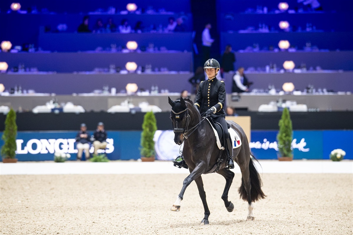 Med første- og andenpladsen besat af samme ryttere som i Grand Prix'en, var der heller ikke meget at rykke med ved tredjepladsen. Hjemmebanerytteren, franske Pauline Basquin, leverede endnu en flot præstation i fredagens kür, og med et publikum der red med på tilskuerpladserne, formåede hun altså at ride sig ind på den tredje bedste position, meget tæt på svenskeren. Pauline Basquin og Sertorius de Rima Z IFCE e. Sandro Hit/ Voltaire Pref blev nemlig belønnet med 81,915% for deres kür, og kunne altså stille sig på podiet som tredje bedst.