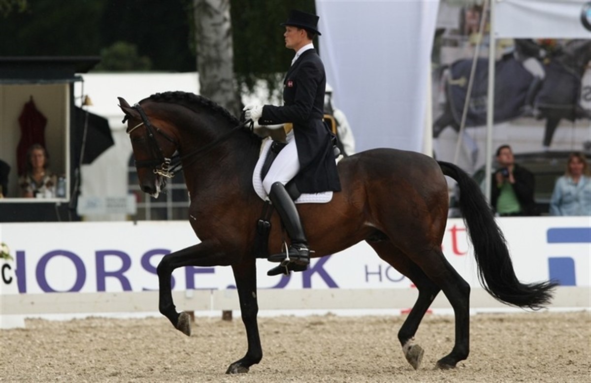 Hvor Mistral Højris har været ubesejret siden WEG 2010, måtte Totilas i går se sig henvist til en tredjeplads i Grand Prixen i Wiesbaden under sin nye tyske rytter Matthias Alexander Rath. I dag måtte Mistral Højris og engelske Laura Bechtolsheimer til gengæld vige sejrpladsens for Totilas og Rath. Mindre end én procent skilte de to topekvipager og det gør fortsat kampen på toppen vanvittigt spændende ved sommerens store stævner, der kulminerer med EM i Holland. Tre af de fem dommere havde Matthias Alexander Rath og 11-årige Totilas e. Gribaldi/Glendale på førstepladsen og ekvipagens samlede resultat blev 81,479%, mens to af dommerne havde Laura Bechtolsheimer og 16-årige Mistral Højris e. Michellino/Ibensen på førstepladsen. De opnåede 80,500%. Disse to topkandidater til EM-medaljerne er helt i særklasse og distancerede naturligvis resten af feltet. Nærmest kom danske Sune Hansen med den 11-årige avlshingst Blue Hors Romanov e. Rohdiamant/Grundstein II. Med en fremragende indsats og et flot resultat på 73,146% lagde Sune Hansen både spanske Jordi Domingo Coll og tyske Hubertus Schmidt bag sig.