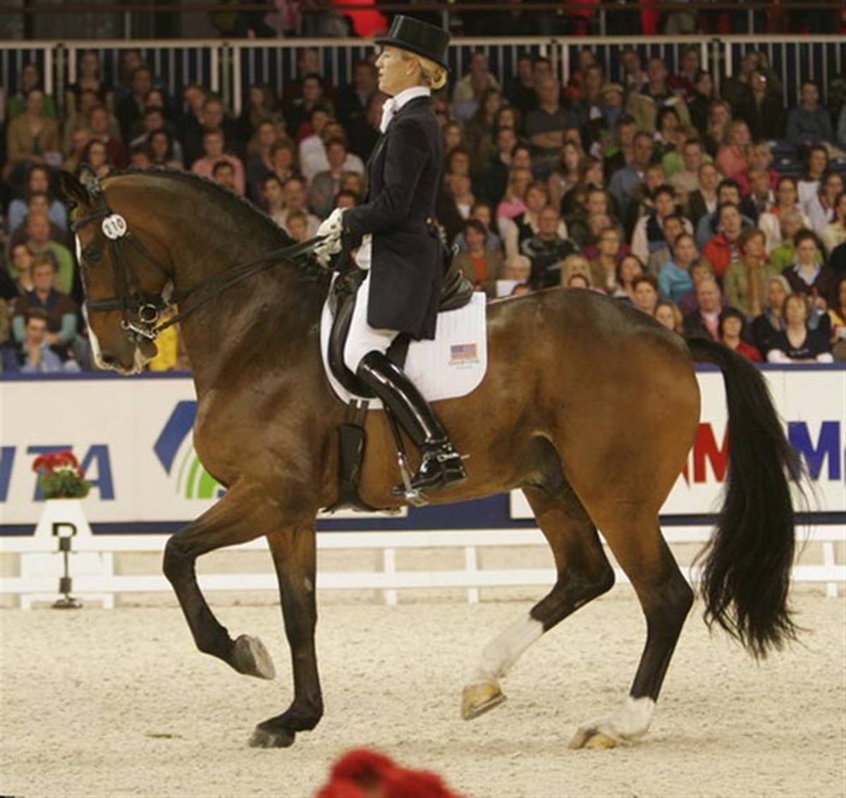 Presset fra at deltage i sin første internationale start udenfor USA's grænser var for stort for Arlene Page, der med sin danskopdrættede Wild One havde betaget alle i Grand Prix-klassen. Efter indridning i skridt var det meningen at Wild One skulle springe an i galop til højre, han misforstod totalt Arlenes signaler og begyndte at gå frem i passage. Arlene gik i panik og lænede sig voldsomt frem og til siden for at springe an, hvilket kun gjorde Wild Ones forvirring større. En lille volte reddede situationen, men naturligvis bar resten af programmet præg af Arlenes og hestens fælles usikkerhed. De fik dog vist glimrende øvelser, med endog meget flotte passage og piaffe sekvenser. Med knap 70% måtte Arlene og Wild One resignere på 12. pladsen i finalen. Wild One er opdrættet af Laila Roschmann i Kolding og det er Sanne Henningsen, som også i denne tophest, har lagt den første vigtige uddannelse.