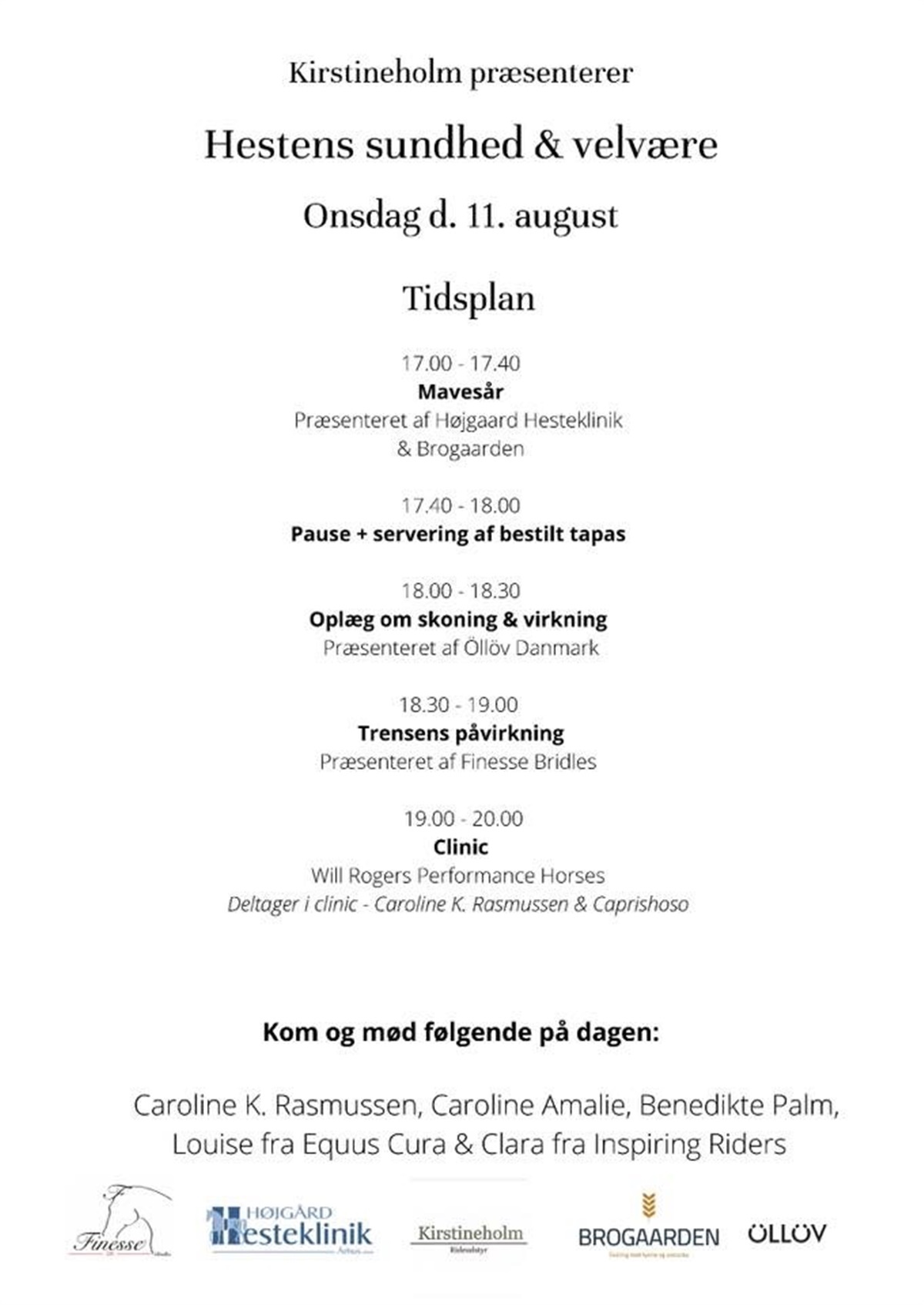 Kurset foregår d. 12-13 august, og Kirstineholms GRATIS event "Hestens sundhed og velvære" er onsdag d. 11 august.