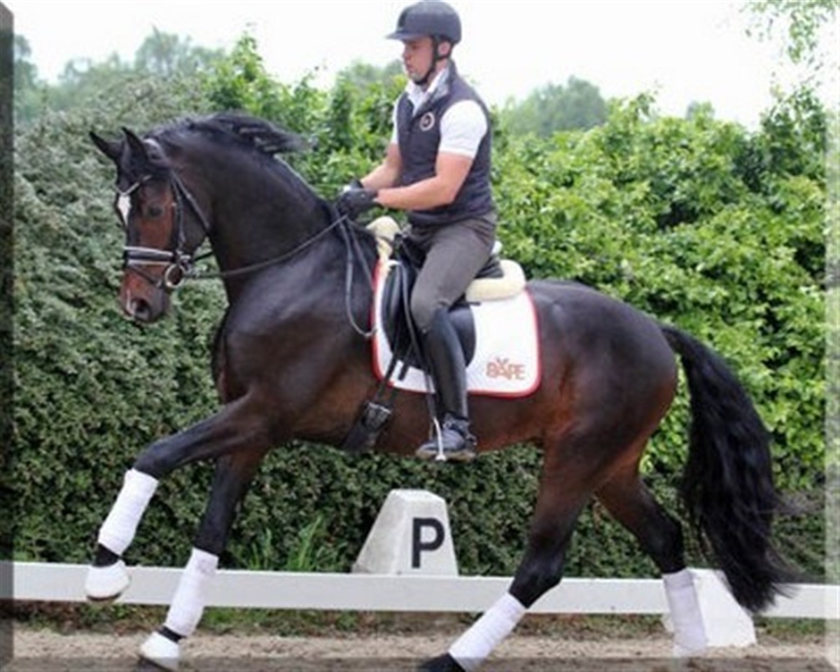 Den mørkebrune hannoveranerhingst, der har gået årets sidste 30-dages hest i Adelheidsdorf, udbydes i avlen af medejeren Ingo Pape.