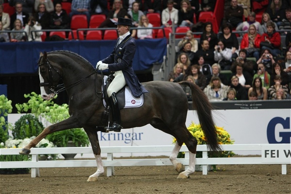 Jublen skyllede ned over Jan Brink og Briar, da de entrede arenæn for at ride deres sidste konkurrence på svensk grund her til aften. Blitzene blinkede på tilskuerpladserne, der næsten var fyldte, og da Jan og Briar kom til afslutningen på deres velkendte kür; passage og piaffe på volter omkring midterlinjen - da begyndte publikum at klappe taktfast, og Jan Brink smilede bredt mens Briar tog sine sidste passagetrin i konkurrence. Sejren kom i hus med 77,2% efter et flot ridt, hvor Briar ikke syntes trykket af sine 18 år - han virkede faktisk mere veltilpas, end han gjorde det f.eks. i Hongkongs varme. Minna Telde holdt fast i andenpladsen på Don Charly med 75,6% foran tyske Ellen Schulten-Baumer og Donatha S med 74,8%. Amerikanske Catherine Haddad og den danske varmblodsvallak Cadillac e. Solos Carex fik en andenplads i gårsdagens Grand Prix, men han virkede lidt mat og tung fortil i dagens konkurrence, hvor han ellers fik vist flot piaffe/passage momenter. Parret fik 71,35%, hvilket rakte til en 7. plads.