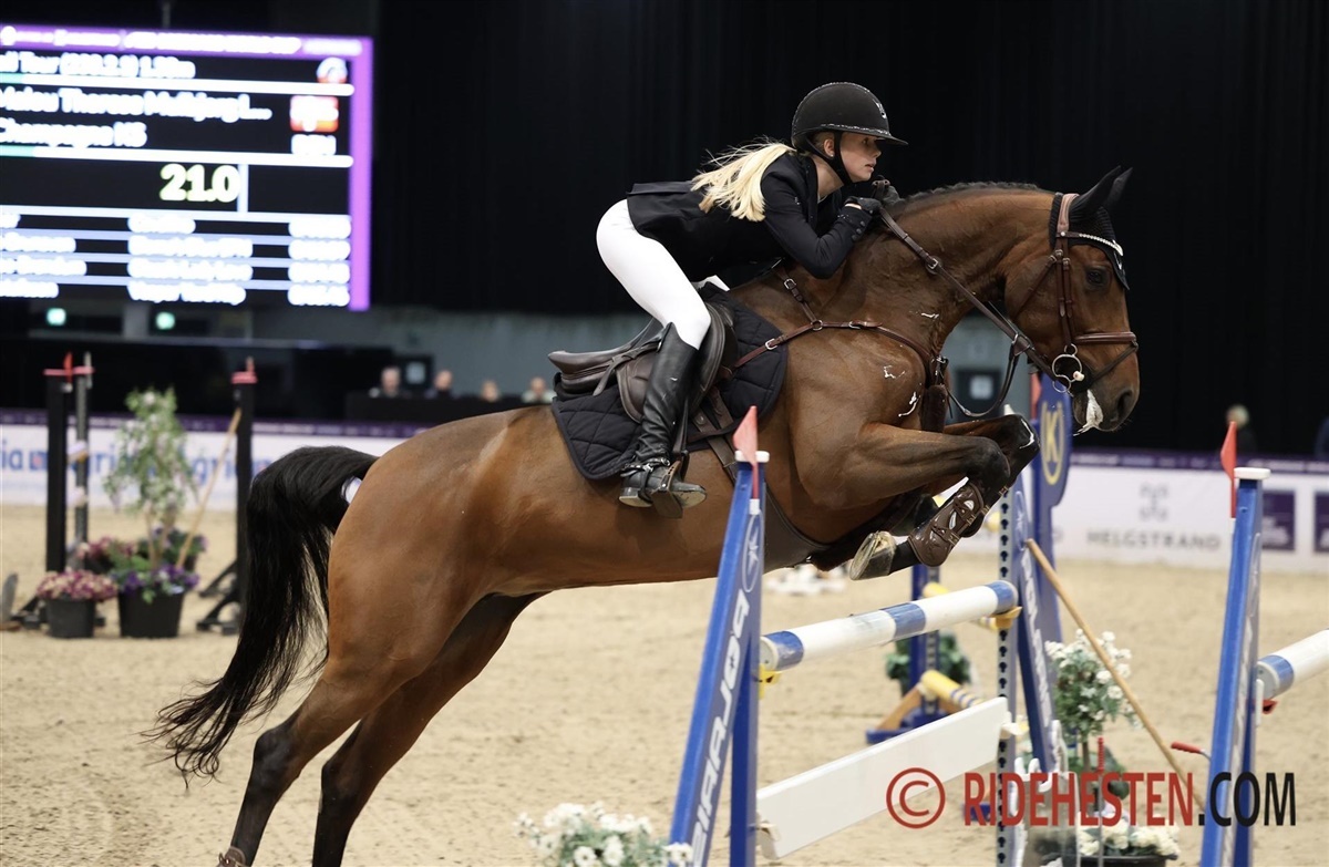 Her blev det til en imponerende dansk sejr, da unge Malou Therese Mulbjerg Larsen red en suveræn fejlfri runde i absolut hurtigste tid. Det gjorde hun på sin trofaste makker, Champagne KS e. Connor 48/ Common Sense, med hvem hun også vandt DM for U18-ryttere på tidligere i år. Malou red sig ind på førstepladsen foran to stærke tyskere, hvor Nisse Lüneberg og Roulette Aeg e. Quasimodo Vd Molendreef D\'08/ Darco besatte andenpladsen, mens tredjepladsen gik til Jona Jolie Schwamborn på Coachella W 2 e. Captain Jack 44/ Baloubet du Rouet.