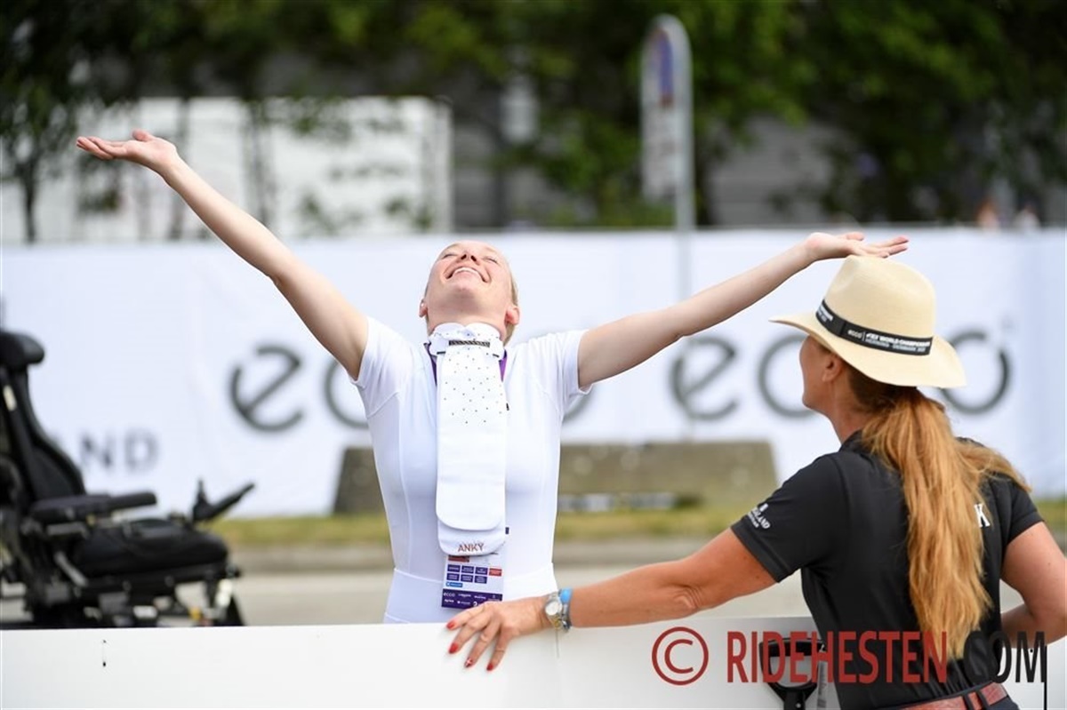 – Jeg kom lidt foran musikken i begyndelsen, men jeg er virkelig tilfreds i dag. Han var så rolig og fin. Det har bare været en fantastisk oplevelse for mig med sådan en ny hest. Han har udviklet sig så godt igennem dagene og er blevet mere og mere rolig derinde, sagde Katrine om ridtet efterfølgende og supplerede med lidt om holdmedaljen, der blev fejret under lørdagens Show Night: