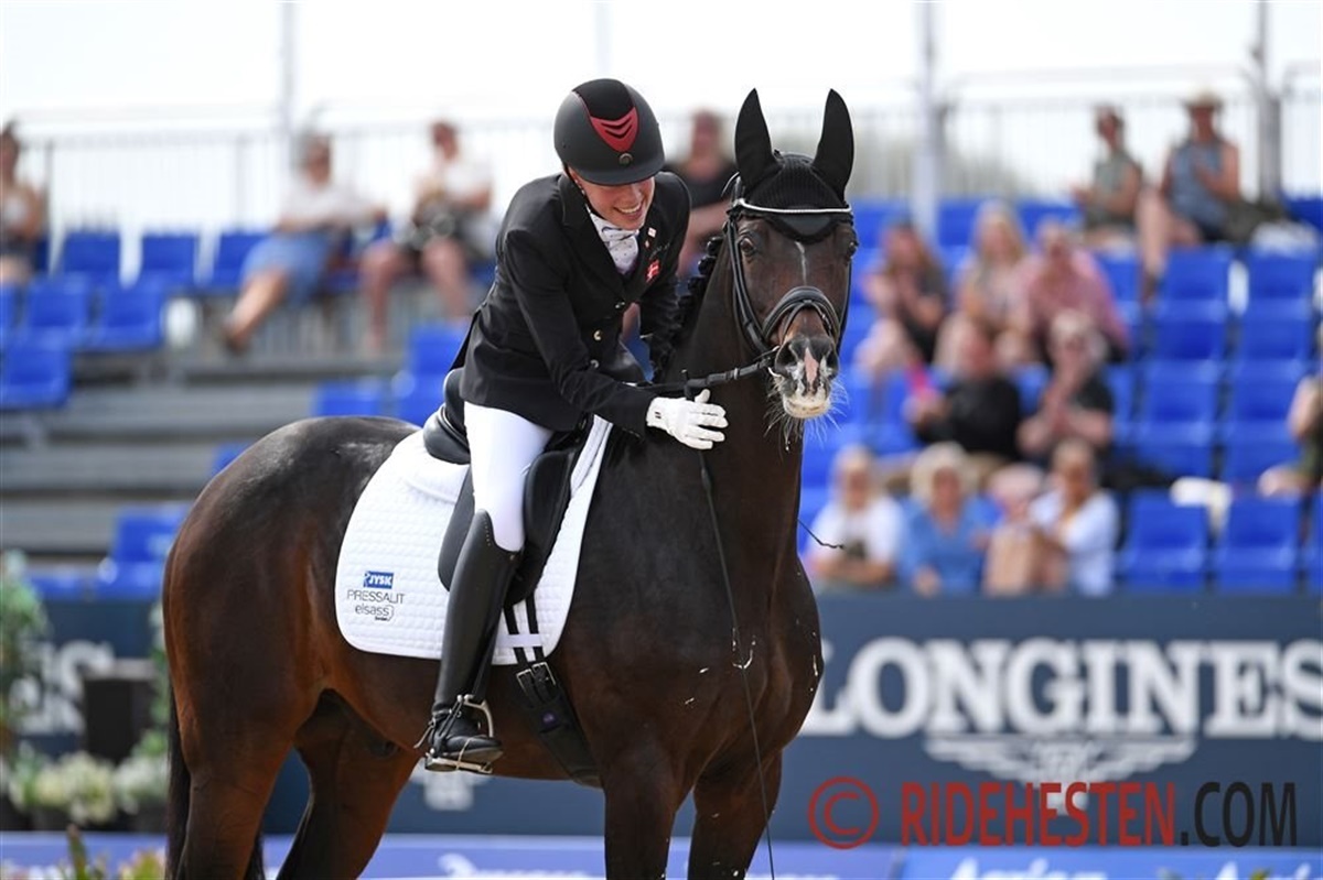 Det er selvfølgelig risikabelt, når man inkluderer sværere øvelser, men Katrine og Quater lykkedes virkelig godt med det, hvilket procenten på 80,354% også afspejlede. Parret var den eneste ekvipage til at krydse den magiske grænse på 80%, og da de resterende tre ryttere havde været på banen, stod det klart, at ekvipagen nu kan tage hjem fra Herning med i alt to individuelle guldmedaljer og en sølvmedalje for hold ved året VM i paradressur.