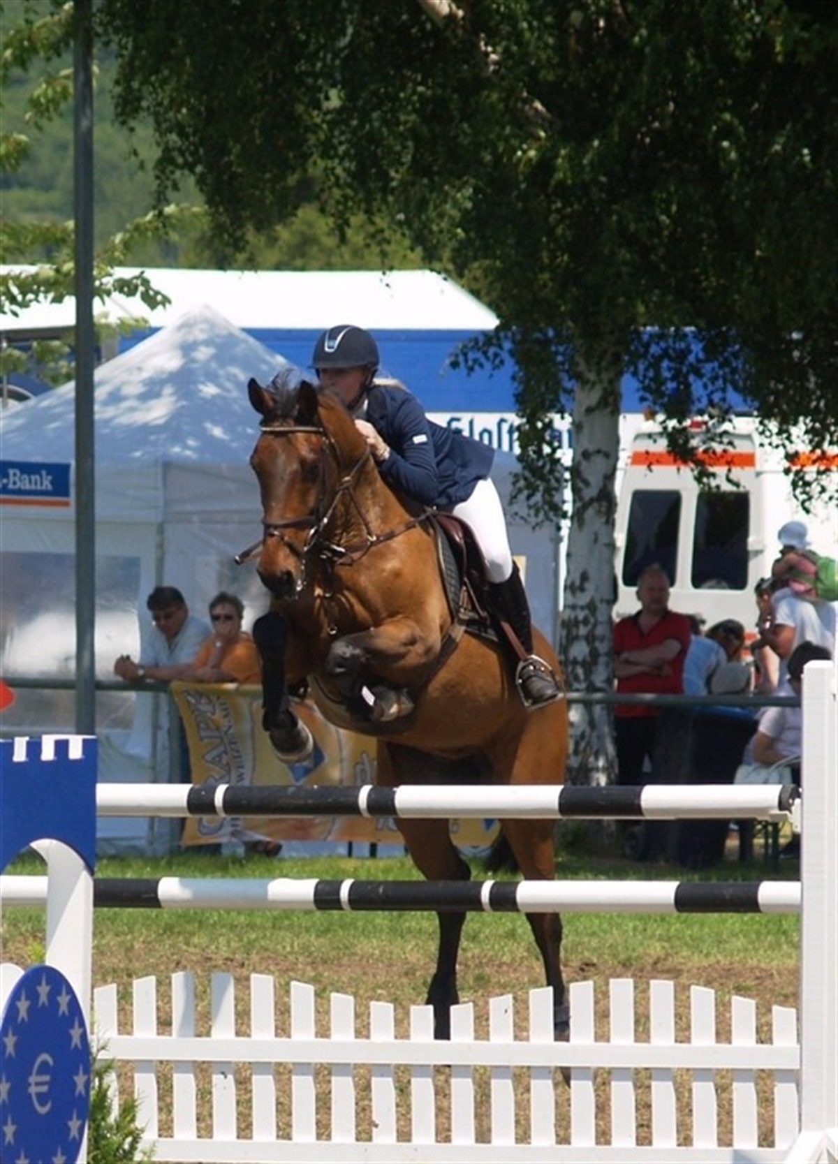 I fredagens 135 cm. og 140cm. klasser var Melanie godt ridende på Odina og Capino med placeringer på begge heste i begge klasser, hvor Rikke og Stephanie var mindre heldige i hestenes første besøg på en græsbane i år. Alle tre ryttere blev placeret i lørdagens 135cm klasse efter 3 flotte nul runder. En 4. plads til Melanie på Odina, en 11. plads til Stephanie på Bally og en 15. plads til Rikke på Lorenzo. Rikke Belinda Barker og Lorenzo var i godt selskab med 34 andre ekvipager i søndagens 140cm CSIJ Grand Prix, hvor de fik en trille bom i 3 kombinationen, men ellers var i top form og fik en fortjent 6. plads med 4 fejl i hovedrunden, hvor kun 4 var nul. I European Youngsters Cup CSI/Y/U25 Grand Prix var Melanie Vestergaard og Capino nul på forhindringerne, men fik desværre 1 tidsfejl og endte på en 16. plads. Stephanie Anton Storm på Ballycapple Cadenza var lidt uheldige efter endnu en flot runde, hvor den sidste pind desværre faldt. I stævnets sidste klasse, 135 cm. med Joker var Melanie på Odina igen blandt støjferne med en 3. plads og Rikke på Kilconnell Sam fik også endnu en god tur, hvor de red i klassens næst hurtigste tid, men desværre med 2 uheldige pinde ned. Et absolut super stævnested ikke så langt fra Danmark, og alligevel en dejlig sydlig atmosfære omgivet af meget meget smuk natur.