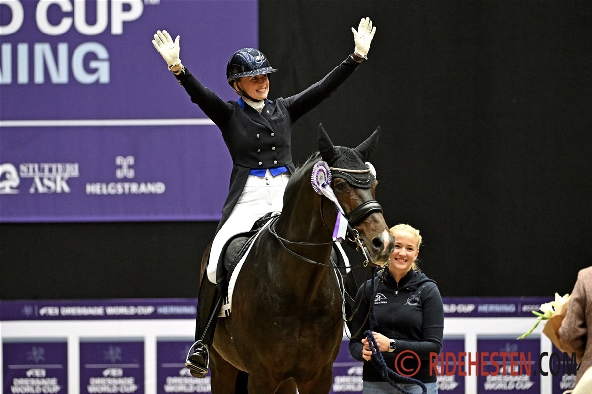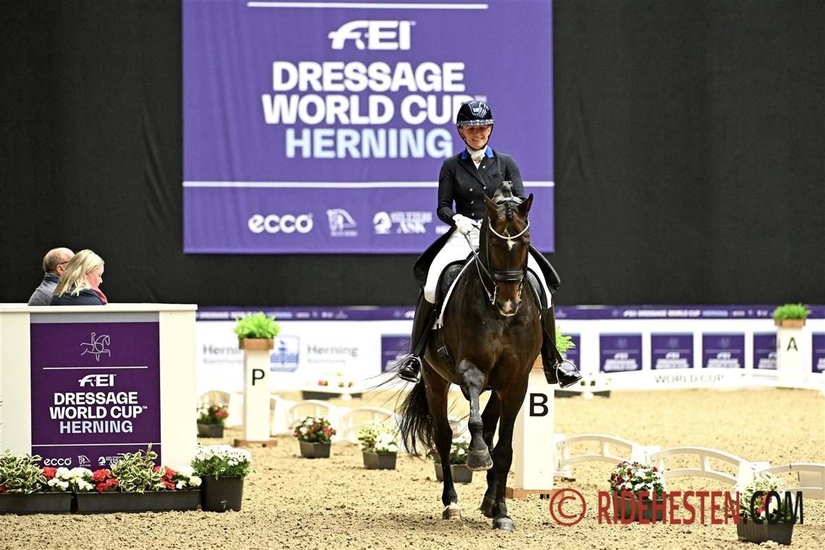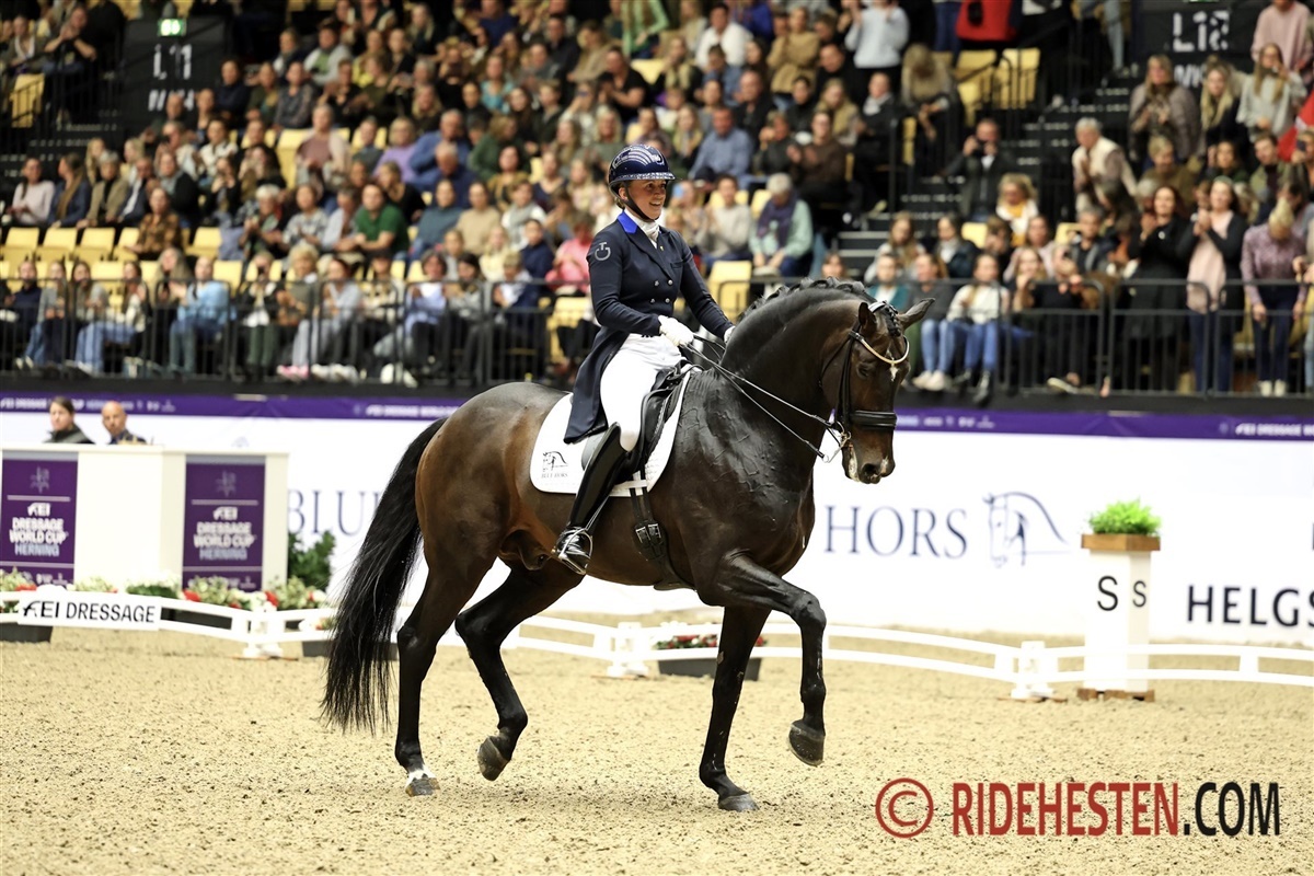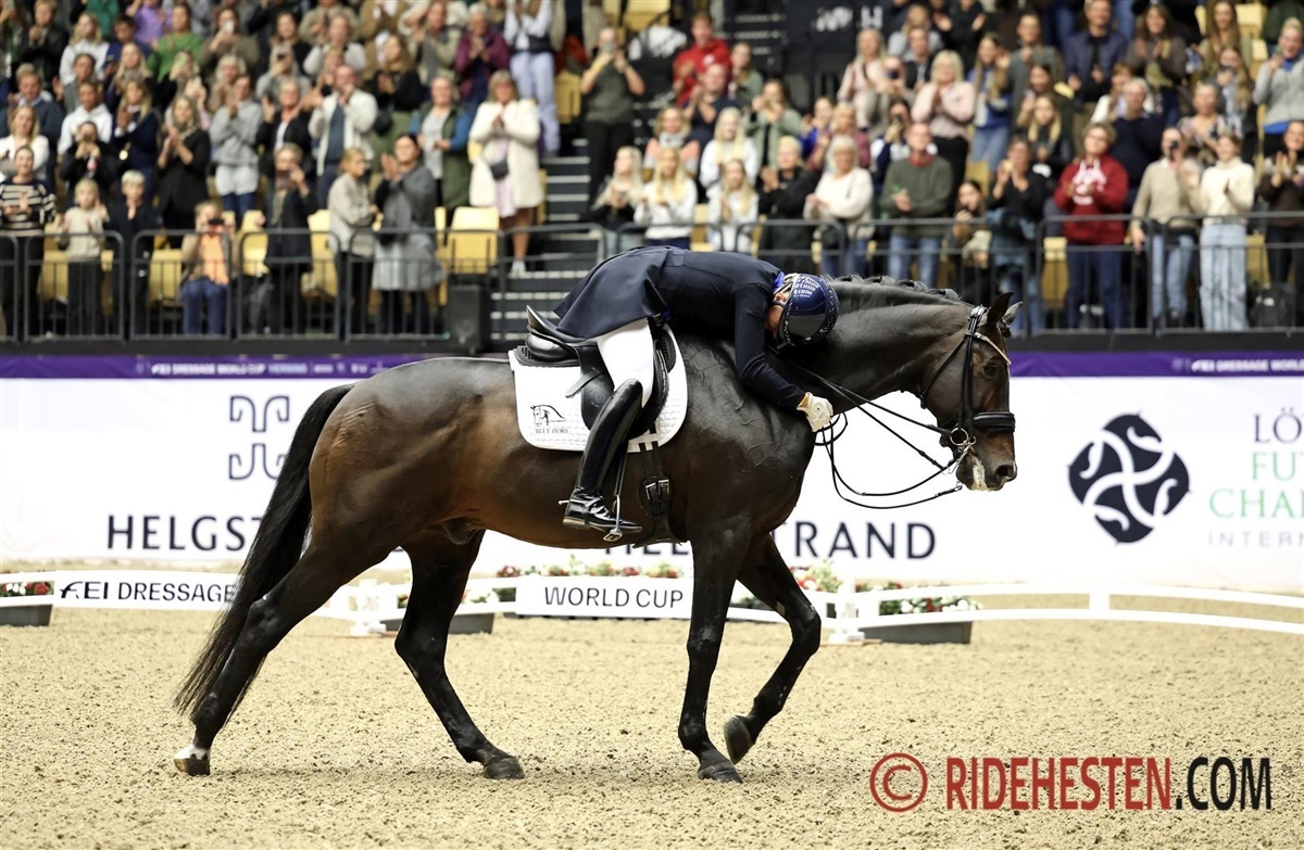 Til tonerne af Zack-sønnen Blue Hors Zepters kür "Time to Say Goodbye" red Nanna Skodborg Merrald og den 19-årige avlshingst i dag deres sidste stævne sammen og blev efterfølgende hyldet med stående klapsalver af et rørt publikum. Det smukke ridt blev belønnet med 82,820% og en andenplads i dagens World Cup-klasse.