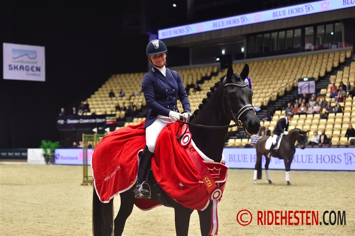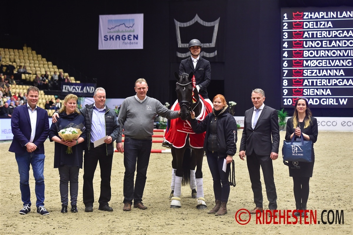 Zhaplin Langholt e. Zonik/ Stedinger (opdr. Ole Magnus Jensen og Bente Graasbøll, ejer Helgstrand Dressage A/S) vandt stålsikkert Blue Hors Unghestechampionat ved Dansk Varmblods Hingstekåring i Herning med 962 point.
