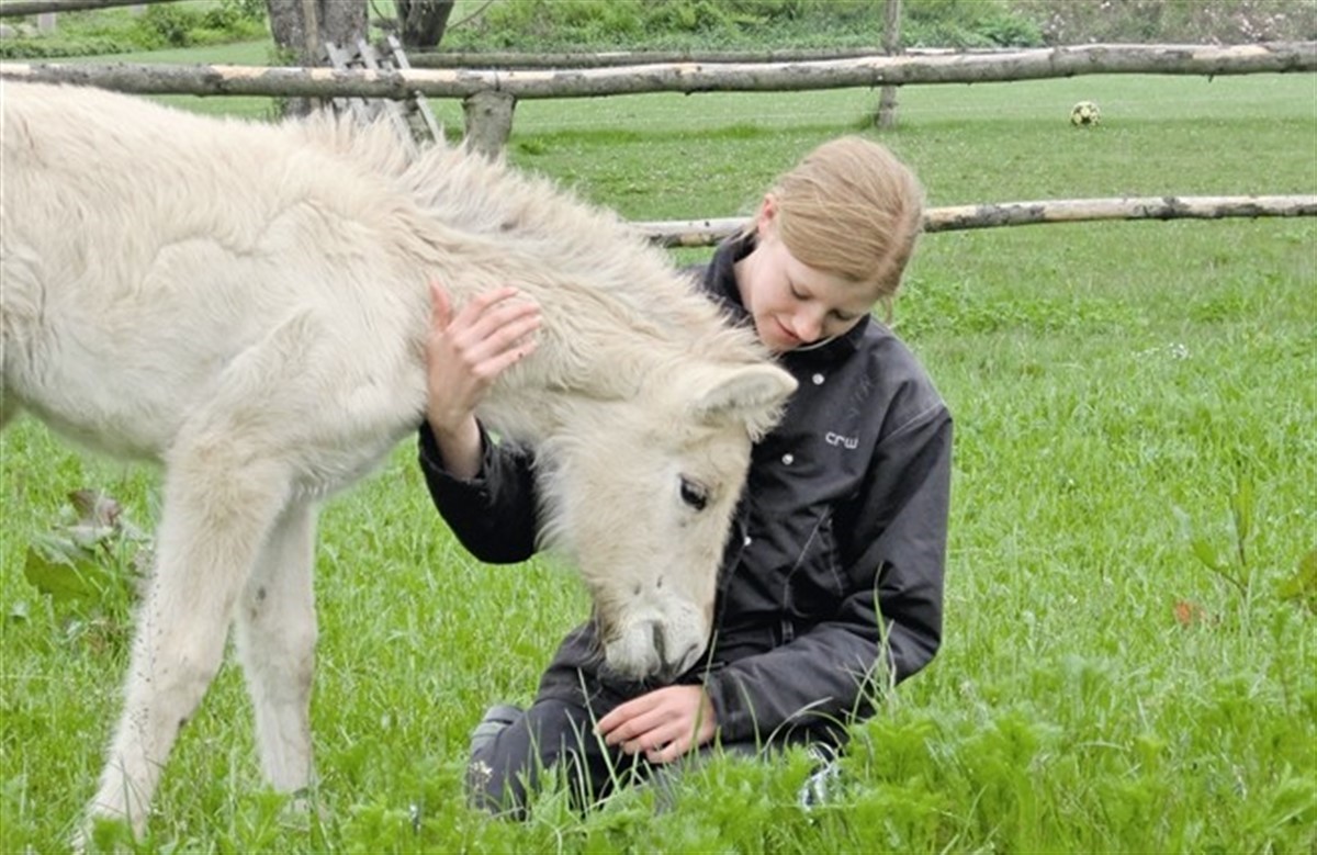 Det hele startede natten til den 23. april 2010. 11 måneder tidligere var Freja, min fjordhoppe, blevet bedækket af den smukke hingst Mastrup Zola. De 11 måneder gik, og jeg ventede spændt på, at jeg skulle have mit allerførste føl! Et lille hoppeføl Den nat, vi så en lille klump på overvågningskameræt, gik vi roligt ud i stalden, da vi var så heldige at have hestene hjemme på gården. Lyset var tændt ude i stalden, og jeg gik hen til Frejas boks. Hun stod op og var våd af sved. Jeg fik øje på det fineste lille føl, der lå helt våd i halmen med lidt blod på bagbenene. I starten lod jeg bare Freja ordne alt det med at slikke føllet rent og tørt. Men lidt efter lagde Freja sig ned igen for at slappe af. Jeg havde læst rigtig mange bøger og kigget mange hjemmesider igennem for at læse alt om folingen. Så jeg vidste godt, at man ikke måtte gribe alt for meget ind. Men alligevel listede jeg ind i boksen og tørrede det kolde våde føl med et håndeklæde. Derefter tjekkede jeg kønnet og gik ud af boksen igen. Freja havde fået et rigtig smukt lille hoppeføl. Bedre kunne det næsten ikke være! Startproblemer Da der var gået et par timer, havde føllet stadig ikke rejst sig op. Jeg undrede mig, men vidste samtidig, at føllet skulle have sin råmælk. Jeg fortalte min mor, at vi blev nødt til at hjælpe hende med at die ved Freja. Jeg blev siddende ved Freja og føllet, mens min mor gik ind og vækkede min far. Da de kom ud igen, fik vi føllet op at stå. Men alt gik ikke helt efter planen. Hvorfor ville hun ikke støtte ordentligt på benene? Hun var utrolig hård ved krydset og ned af bagbenene. Men nu koncentrerede vi os bare om at få hende til at die ved Freja. Måtte malke ud Freja havde aldrig haft føl før, men stod rigtig pænt stille i starten. Mens vi kæmpede for at få hende til at die, begyndte Zoey pludselig at slå med hovedet. Altså slå det op i Frejas lyske, det var selvfølgelig ubehageligt for Freja, og hun blev mere og mere urolig ved det og begyndte da også at sparke lidt ud efter føllet; ikke direkte efter føllet, nok mere af os. Men vi blev jo nødt til at hjælpe! Føllet fik kun meget lidt af Freja, så vi valgte derfor at malke Freja. Det gik fint, og føllet fik heldigvis sin råmælk! Derefter lod vi hestene få fred og ville så se, hvordan det gik dagen efter. Jeg havde ikke fået meget søvn den nat og kunne mærke i min hals, at jeg havde frosset. Men jeg skulle i skole, selvom jeg have allermest lyst til at blive hjemme. Min far ringede efter dyrlægen, så han kunne komme. Han kunne ikke give os svar på, hvorfor hun ikke ville stå, og mente muligvis hun var lam i bagbenene. Øv! En chance til Heldigvis valgte vi at give hende en ekstra Chance. Dyrlægen gav hende noget penicillin, sukkervand i blodet og en stivkrampevaccination og noget vand, så hun ikke skulle blive dehydreret. Jeg var stadig i skole, men kunne ikke holde det ud mere. Jeg ringede efter min kusine, som ville køre med hjem og hjælpe os med føllet. Jeg gik direkte ned i stalden, og vi begyndte at rejse Zoey, måske kunne vi lære hende at gå? Senere kom en anden dyrlæge for at kigge på hende. Han sagde, at hun var et rigtig flot lille føl med masser af energi, der bare ikke kunne blive brugt. Han mente, vi skulle give hende mælkeerstatning og flaske hende med sutteflaske og ellers bare lave en masse gå-træning med hende. Fremskridt Jeg gav hende navnet Lamhaves Zoey, i daglig tale Zoey, fordi jeg syntes, navnet bare passede perfekt til hende! Hun blev bedre for hver dag, der gik, og hun tog også på i vægt! Hun lærte at gå og blev meget bedre til det. Derefter begyndte hun at trave; det kan ikke beskrives, hvor glad jeg blev den dag, da hun pludselig satte i trav! Nogle dage efter galoperede hun pludselig! Det var det bedste, der var sket i lang tid! I dag er Zoey flere måneder gammel, men stadig ikke som alle andre føl. Jeg tror selv, hun opfatter ting på en anden måde end ”almindelige” heste. Fx er hun hverken bange for biler eller vand, der sprøjter. Det er selvfølgelig noget af det gode ved alt det, der er sket! Hun vokser heller ikke som almindelige føl. Et lille livsstykke En måned efter Zoey kom til verden, fik vi et andet lille fjordhesteføl: Confetti. Da Zoey blev født, var hun omkring 84 cm høj, og da Confetti blev født var han 91 cm høj. Selvfølgelig er Confetti også en hingst. 2 måneder gammel var Zoey kun vokset 6 cm, mens Confetti 2 måneder gammel var vokset 16 cm. Men Zoey trives, og vi håber alle, at hun har en god fremtid som hyggepony foran sig! I hvert fald skiller jeg mig aldrig af med hende; hun skal ikke opleve flere svære ting i livet, end hun allerede gør nu! Ingen ved med sikkerhed, hvad hun fejler.