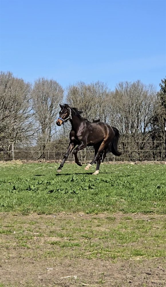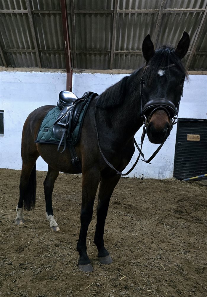 Super smart 3 års vallak, med tre gode gangarter, skridten er særdeles god. Nuværende højde er 164 cm, far er Bluehors Veneziano der har gjort det godt i sporten og Morfar er Sixten Langholt, der har et godt dressur index. Han er her i foråret tilredet professionelt, og taget det med god samarbejdsvilje. Han går alle 3 gangarter pænt og svare pænt for hjælperne. Han er en glad og omgængelig fyr, at være omkring, både i stald og på fold, for både mennesker og heste. Han er passet med vaccinationer, ormekur og hovtrimning, går pt uden sko. Han er redet flere steder i både ridehus og på udendørs bane, har det ene sted også været lidt på tur alene, uden at man oplever den store forskel, han er også typen, der bare vader igennem store vandpytter, uden at kigge. Så alt i alt, en umiddelbar cool fyr. Han sælges kun, da der skal vælges en hest fra pga. uddannelses start og hoppen med mulighed for føl på sigt vandt. Desværre er der tit et men og det er der også her. Vi valgte at tage røntgen på forhånd, da vi vidste at de fleste ønsker sig det. Han er ren i røntgen på nakke og overlinie, men kun klinisk ren, på benene, der blev desværre fundet en mus i venstre bagkode, som ligger, så den ikke burde komme til at genere, så lav risiko, særligt med den kliniske undersøgelse, med bøjeprøve, der var helt fin, men dog er den lille risiko. Røntgenbilleder har været forbi Højgård hestehospital. Vi har intet bemærket af gener eller andet, tværtimod en hyggelig og arbejdsom fyr. Ved interesse, kan man få udtalelse fra dyrlæge og røntgen tilsendt. Hvis man ønsker sig en hyggelig, glad, smart og blød dressurhest, man selv kan forme, så er han et kig værd, lidt spring kan nok heller ikke udelukkes, han løsspringer i hvert fald gerne.