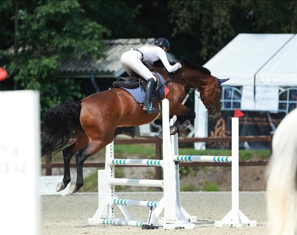 Har flere fejlfrie runder i 110 cm til stævner og er hjemme sprunget baner op til 130 cm.