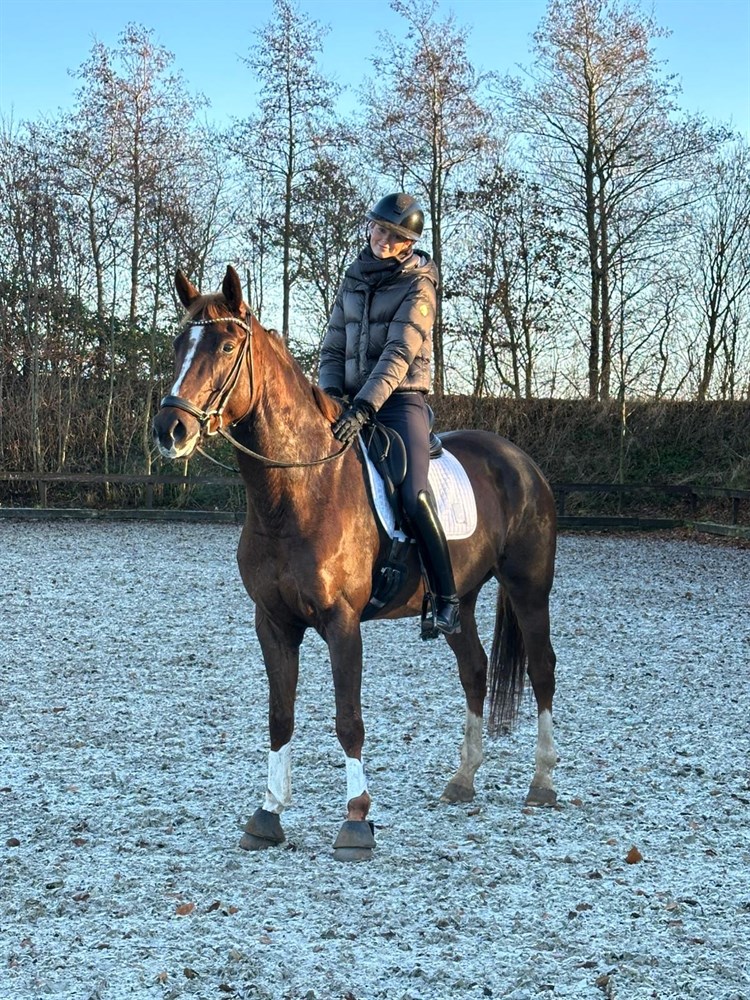 Omgængelig, tillidsfuld og arbejdsvillig 4 års hoppe. Ca 167 stg Hesten der giver en god oplevelse hver gang. Hun er langt i øvelserne på la niveau. Ekstrem nem at flytte med benene. Kan rides på tur alene. Kan gå på fold med andre. Hjemmeavlet og fin røngten for et år siden.