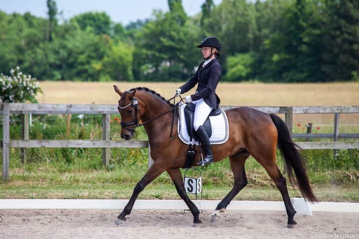 Hun udbydes til en meget attraktiv og skarp pris, da hun er ude af konkurrenceform. Hun har det sidste år været drægtig og gået med føl, samtidig med at jeg selv har været det samme igennem. Derfor rides hun ca. en gang i ugen med føllet ved hånd. Hun er heldigvis en hest, som sagtens kan tåle at stå uden nogen forandring.