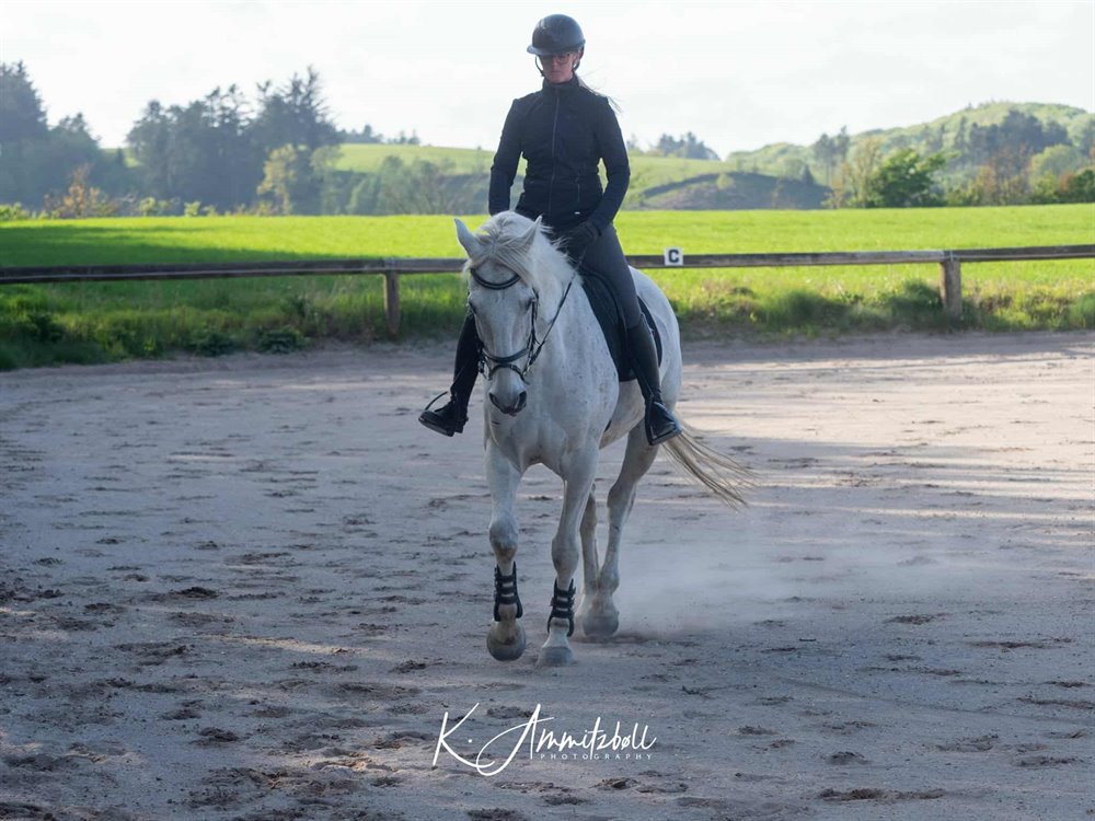 På dressur banen høre han pænt efter og kan lave lidt side bevægelser også. Står stille ved opsidning.