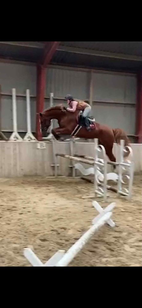 Har gået springstævner op til 1m fejlfrit. Hun er ligeledes sød at have med i byen.