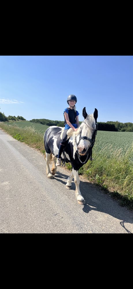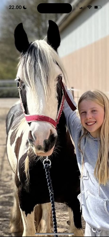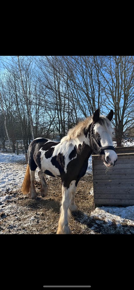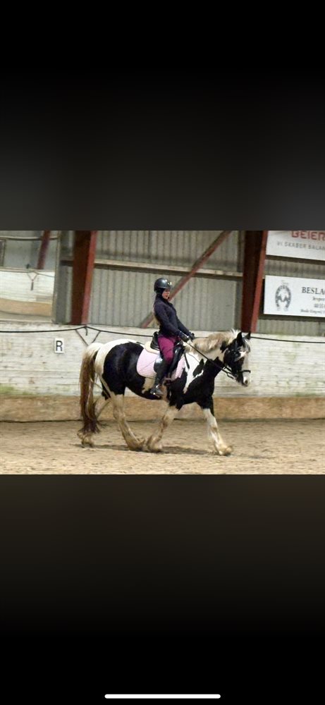Hun er tinker hoppe, fra 2012, ca. 148 cm. (Vi har ikke målt efter)