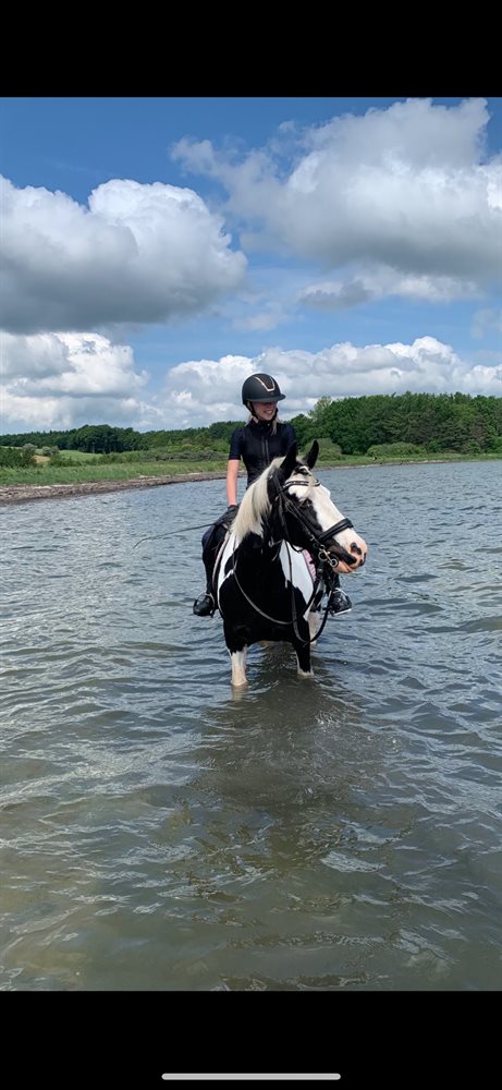 Vi har både redet lange ture i skov og ved vand alene, dressur og spring. (Spring er ikke hendes stærke side grundet hendes bygning) men hun synes det er sjovt.