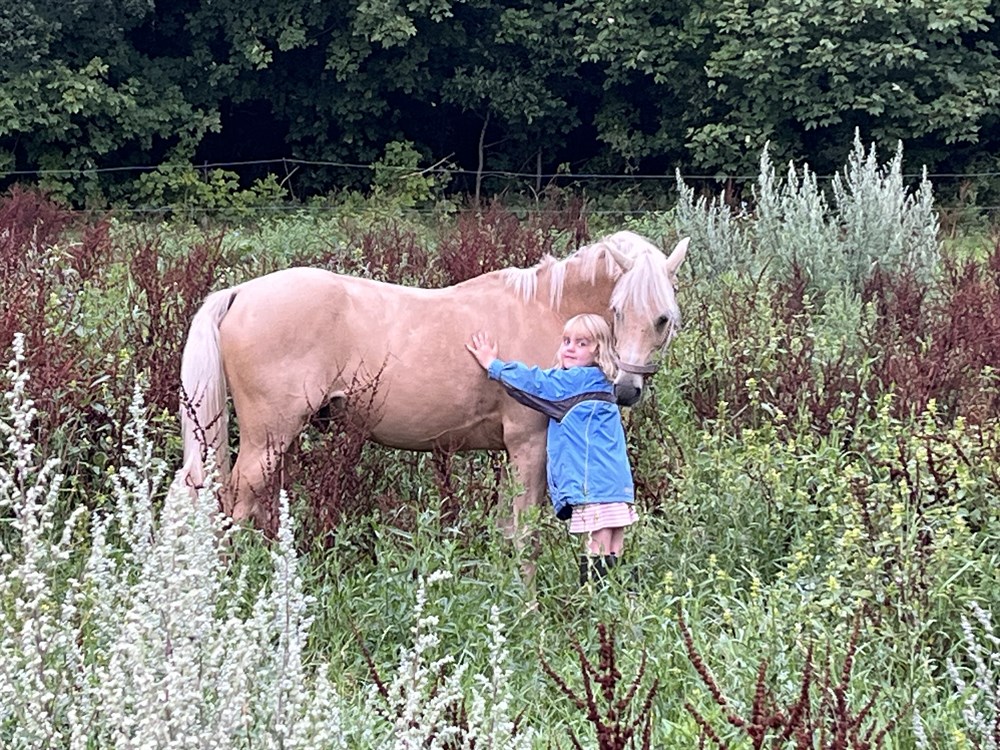 På billederne rides han af henholdsvis en meget stor ponyrytter (16 år, hele 182 cm!) og lille ponyrytter (12 år, 158 cm). Han kan godt lide selv helt små børn og kan fra jorden også håndteres heraf (vores egen yngste kunne fra hun var bare 4 år trække ham til og fra fold eller til striglepladsen m.v.). Han er ponyen der giver en god tur og kan få dit barn til at smile hver dag :-)