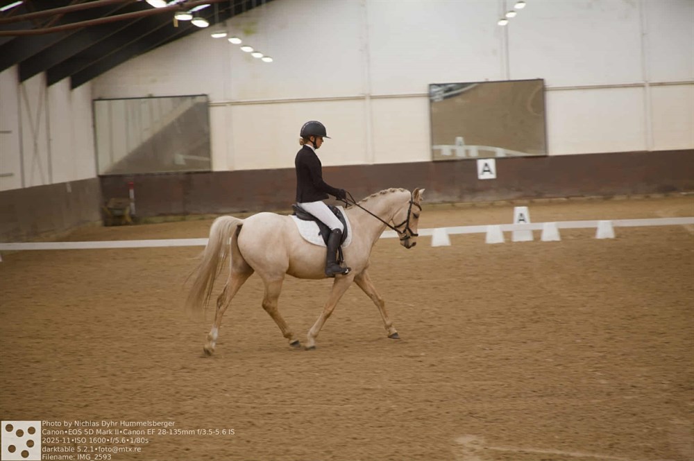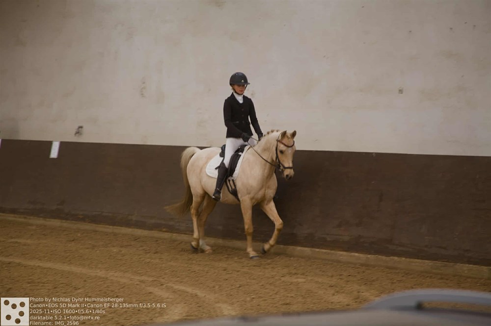 Han har et exceptionelt temperament og er yderst velredet. - Der er langt imellem ponyer af den kaliber med så flot et grundtempo og som kan rides med så få gram i hånden!!! Livet bliver også lige lidt lettere når ponyen kan stå i traileren imellem klasserne ;-)