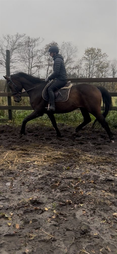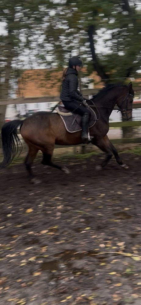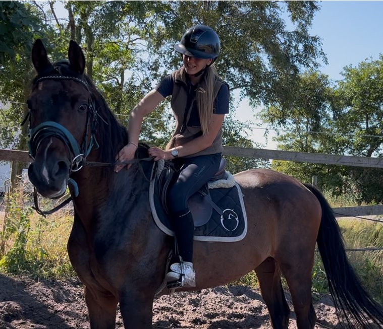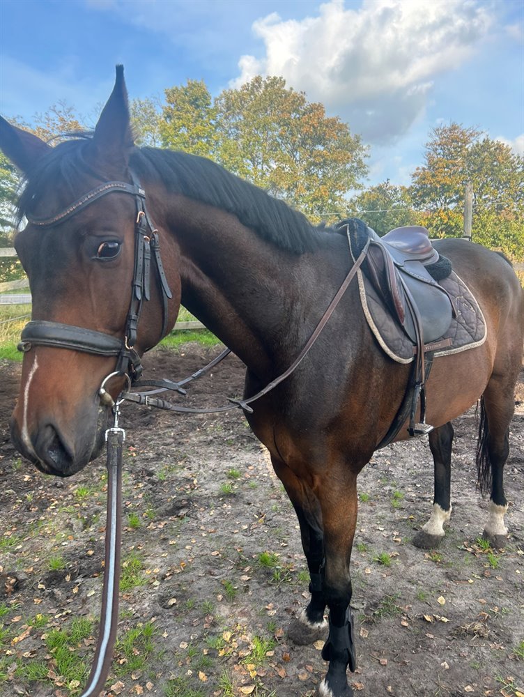 Han har aldrig smidt af eller prøvet på det, og har været super sød at tilride, han er en glad energisk hest som elsker at blive nusset og snakket med.