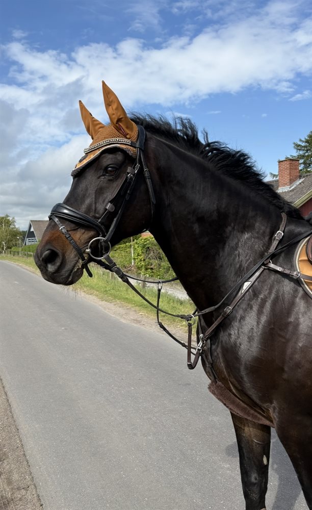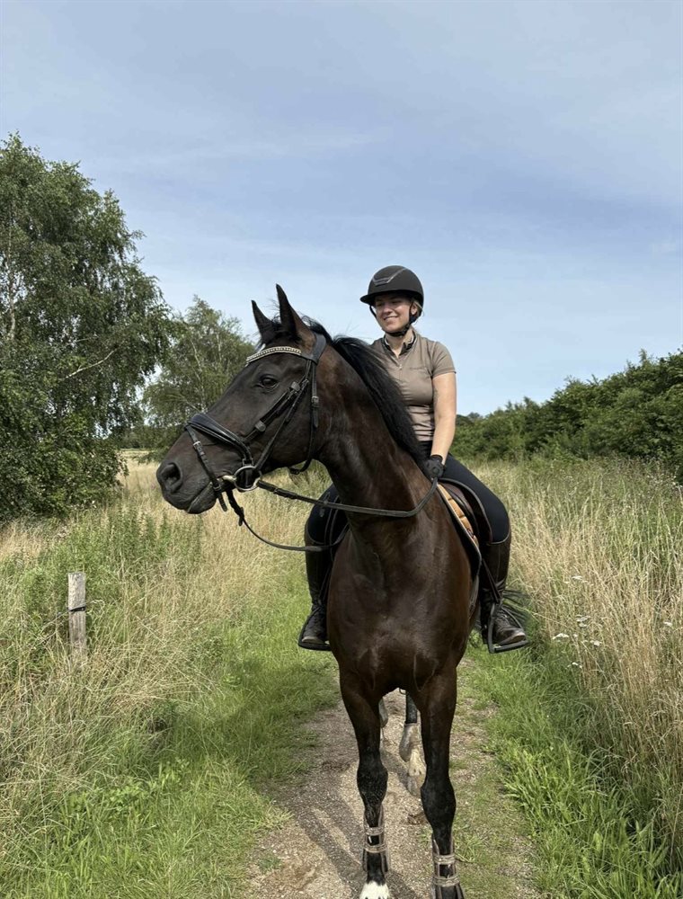 Han er sød at have med i byen og i skoven, men skal nogle gange overtales lidt til at gå i trailer. Han er trafiksikker og rides på tur flere gange om ugen når vejret er til det.