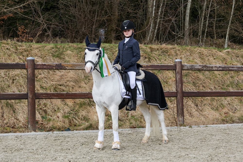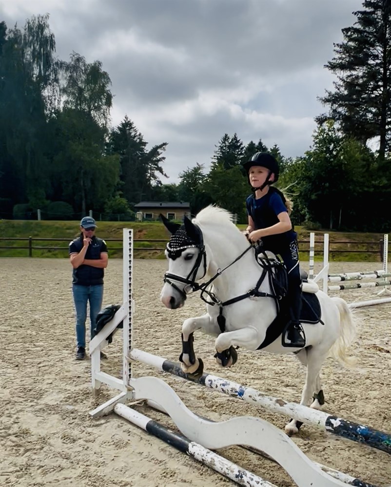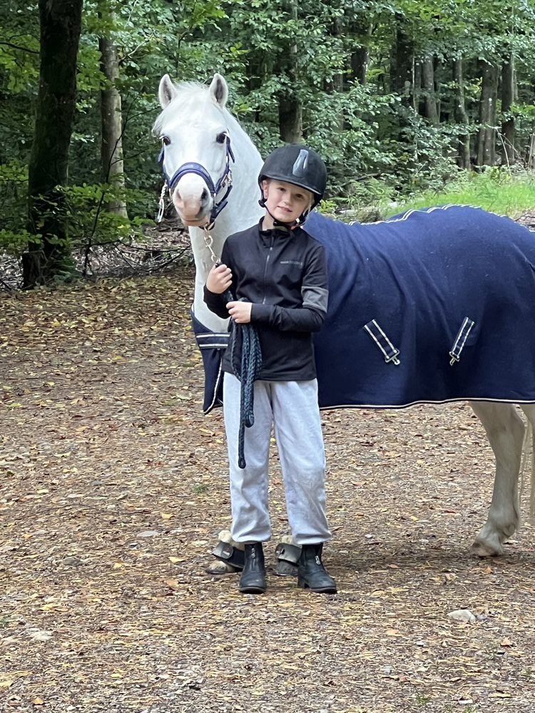 Han kender alle sine opgaver og tager det meste med ophøjet ro – uanset om det er på tur, på banen eller til nye oplevelser. En rigtig cool type, som giver tryghed til sin rytter. Har haft rosetter med hjem fra alle stævner (både dressur og spring) med nuværende rytter på 9 år. Rytteren på billederne er 142 cm.