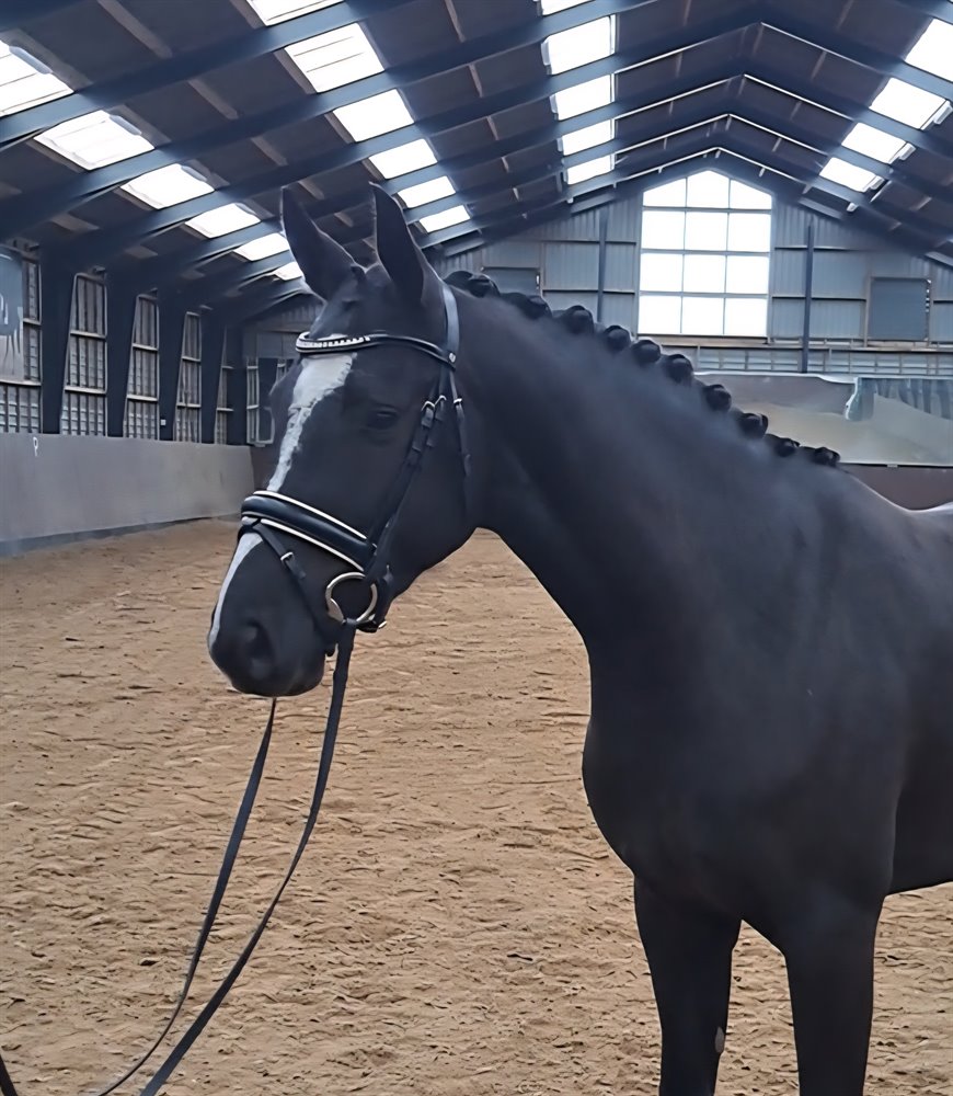 Hun er netop hentet hjem på voksepause og kan derfor ikke fremvises under rytter men video af ridning og løsspring kan ses i annoncen.