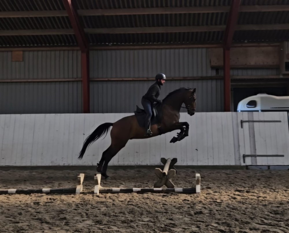 Introduced to small jumps in freejumping and with the rider.
