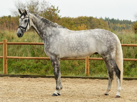 Han trænes på LA niveau og er godt i gang med at opbygge styrke, til sin videre uddannelse. Han er super sød og ukompliceret, let for hjælperne og så har han en rigtig god arbejdsindstilling og passende mod.