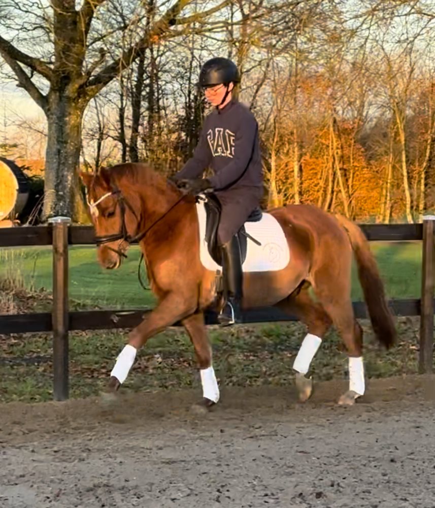 Han kan rides på tur alene og med andre. Han er trafiksikker og går direkte i trailer. Har ingen staldfejl eller andre unoder.
