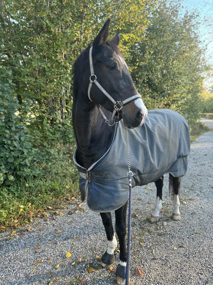 Hun trives i boks og på fold trives hun med en lille flok. Kan både gå sammen med hopper og vallakker