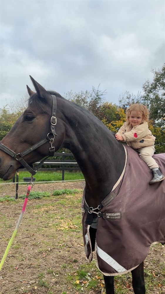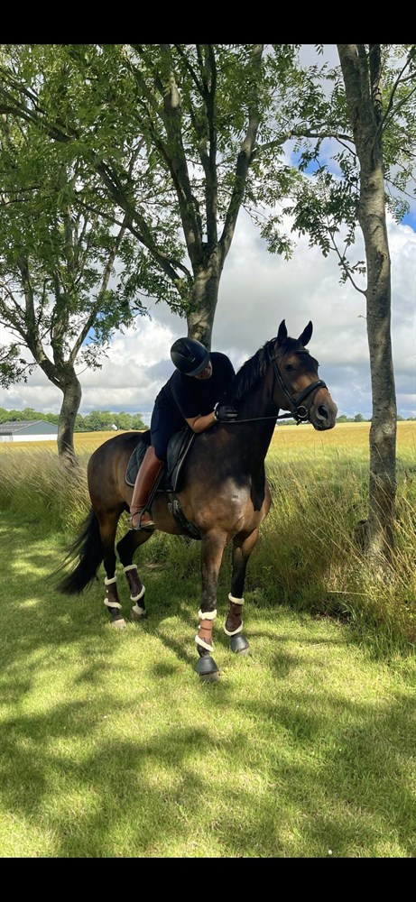 Dille Romanzée er en exceptionelt smuk og kraftfuld hoppe med kæmpe ridelighed som man sjældent ser, en hest som virkelig skiller sig ud. Hun har et helt fantastisk hoved, og hendes udstråling er noget særligt. Hun er nem i al håndtering, og hun går uden problemer lige op i traileren. Romanzée elsker at blive nusset og plejet, og hun er en hest, der virkelig nyder opmærksomhed. I 2020 fik Romanzée et hingsteføl efter hingsten Kardinero, som er solgt til USA. Hun har vist sig at være en fremragende avlshest og avler topklasseføl. Romanzée er en hest med en imponerende gangformåen, og hun bevæger sig med stor lethed og en naturlig kadance. Hun er ikke kåret hos os, men ville uden tvivl kunne kåres i Dansk Varmblod (DV) uden problemer, da hendes kvalitet og blodlinjer taler for sig selv. Desværre har Romanzée været igennem en undersøgelse på Faxe Dyrehospital, hvor der blev konstateret artrose i hendes forben. Derfor kan hun ikke bruges som ridehest. Dog har dyrelægen på Faxe givet hende grønt lys til fortsat avl, da artrosen ikke er arvelig og ikke vil påvirke hendes afkom på nogen måde. Romanzée er en helt særlig og elsket hest her hos os, og derfor er det meget vigtigt for os, at hun kommer til et godt hjem som hun fortjener. Pris ide 35.000