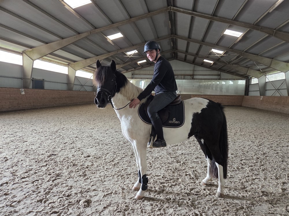 Estrella er en dejlig lærenem pony, der har været håndteret siden hun var helt lille. Hun er trænet fra jorden, gået ture i naturen, i byen og været vant til at køre trailer til nærliggende rideskole, hvor hun er blevet trænet fra jorden. Hun er nu redet til af erfaren springrytter i skridt, trav og galop, og spring, og har været til sit første banetræning, som hun tog helt cool. Hun står for tiden på Midtjysk ridecenter, hvor hendes videre træning fortsætter og hun kan ses.