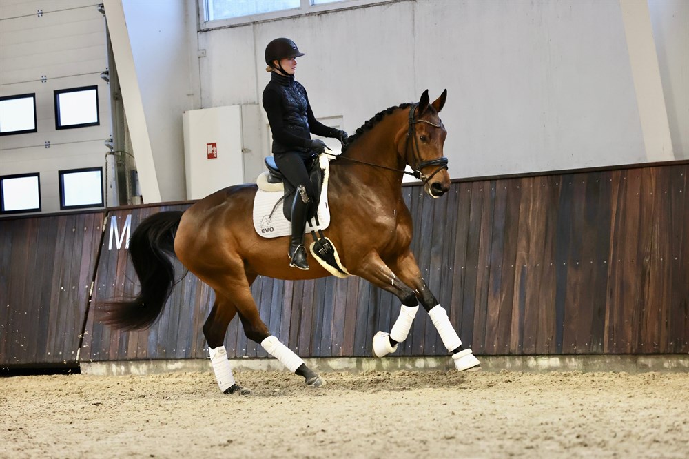 Hun er startet tilridning i April sidste år, og har taget det super flot, og viser et skønt temperament.