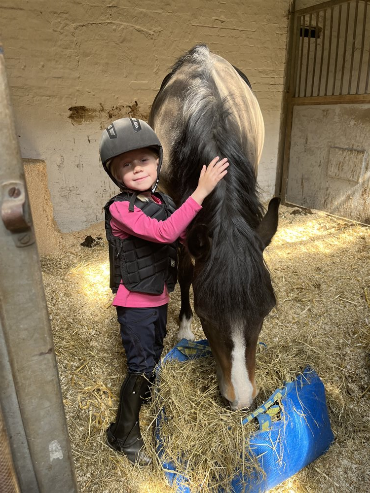 Det sidste år har vi fået mindre og mindre tid til hende og vi synes nu det er bedst at finde en ny ponyrytter eller familie, som vil bruge hende noget mere, da hun elsker det. Hun er stadig i ridning og udvikler sig for hver undervisning.